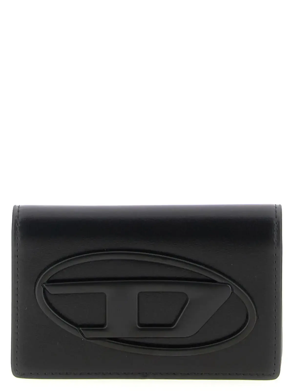 Вишуканий чоловічий картхолдер із гладкої натуральної шкіри чорного кольору, оснащений клапаном із кнопковим замком для надійного зберігання карток. Елегантний металевий логотип овальної форми додає виробу статусності, а компактний дизайн забезпечує універсальність і зручність у повсякденному використанні.