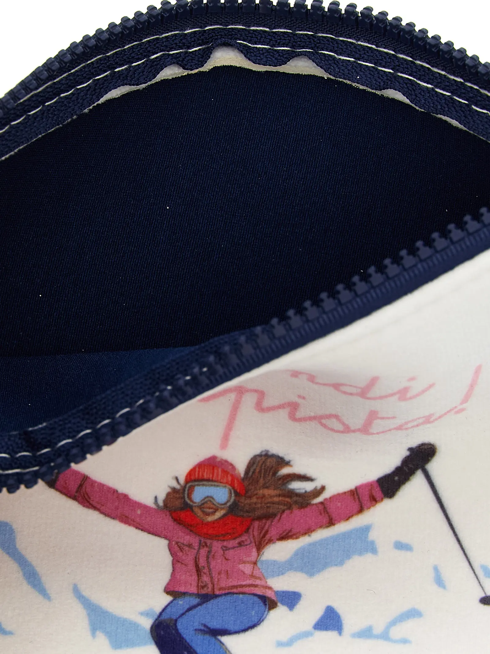 Матеріал виготовлення складається з 80% стирол-бутадієн-стиролу та 20% поліестеру. Усередині підкладка з неопрену. Тканина з ефектом вовни. Виріб має принт на лицьовій та зворотній стороні. Закривається зверху на блискавку. Модель виконана у формі клатчу.