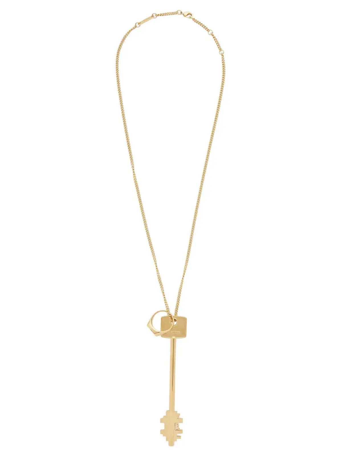 Елегантне жіноче кольє Key від Paco Rabanne виконане з високоякісної латуні із золотистим покриттям, що поєднує інноваційний дизайн із функціональністю регульованої довжини. Вишуканий аксесуар із підвіскою у вигляді ключа та кільця підкреслює статус і витончений стиль, додаючи неповторного шарму будь-якому образу.