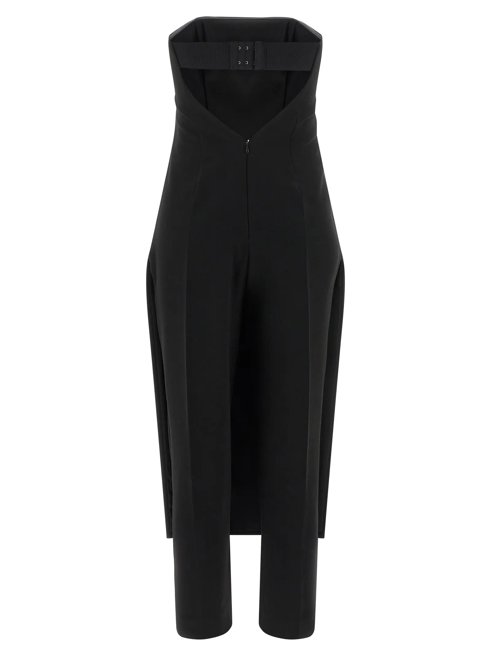 Чорний комбінезон із колекції Scartaregalo виготовлений із високоякісного поліестеру, віскози та еластану, поєднує елегантний дизайн з функціональністю завдяки відкритим плечам, вбудованому бюстьє та витонченим деталям, що підкреслюють статус і вишуканий стиль сучасної жінки.
