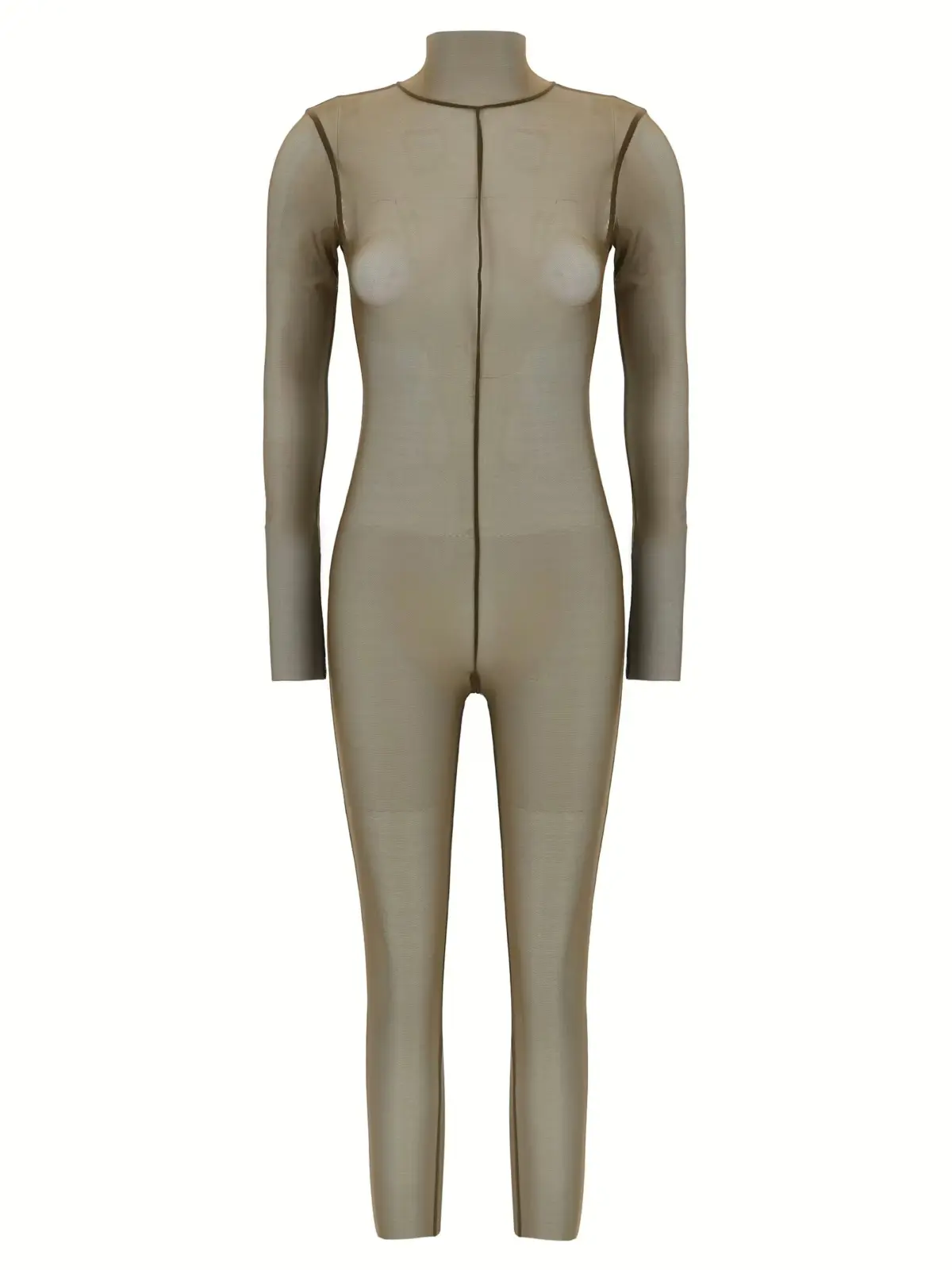 Вишуканий комбінезон Turtle виконаний з напівпрозорої тканини високої якості, що поєднує поліамід та еластан для максимальної зручності та динаміки рухів. Елегантний дизайн з високим коміром, довгими рукавами та незавершеним низом підкреслює сучасний стиль і статус, забезпечуючи універсальність для створення неповторних образів.