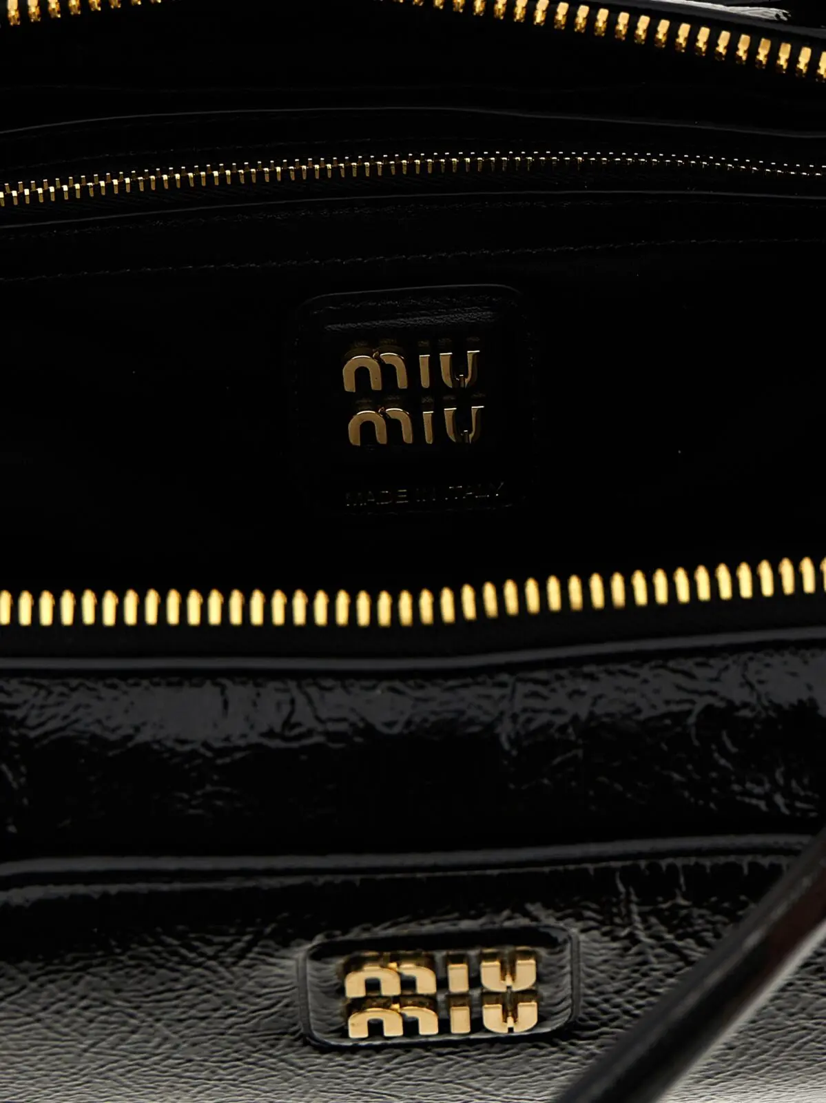 Косметичка Miu Miu Trunk виконана з натуральної овечої шкіри з глянцевим покриттям, що надає виробу вишуканого блиску. Елегантний металевий логотип на передній панелі підкреслює престиж бренду, а функціональна застібка на блискавку та подвійна ручка забезпечують комфорт і універсальність використання. Цей аксесуар ідеально поєднує стиль, якість і інноваційний дизайн для впевнених у собі жінок.