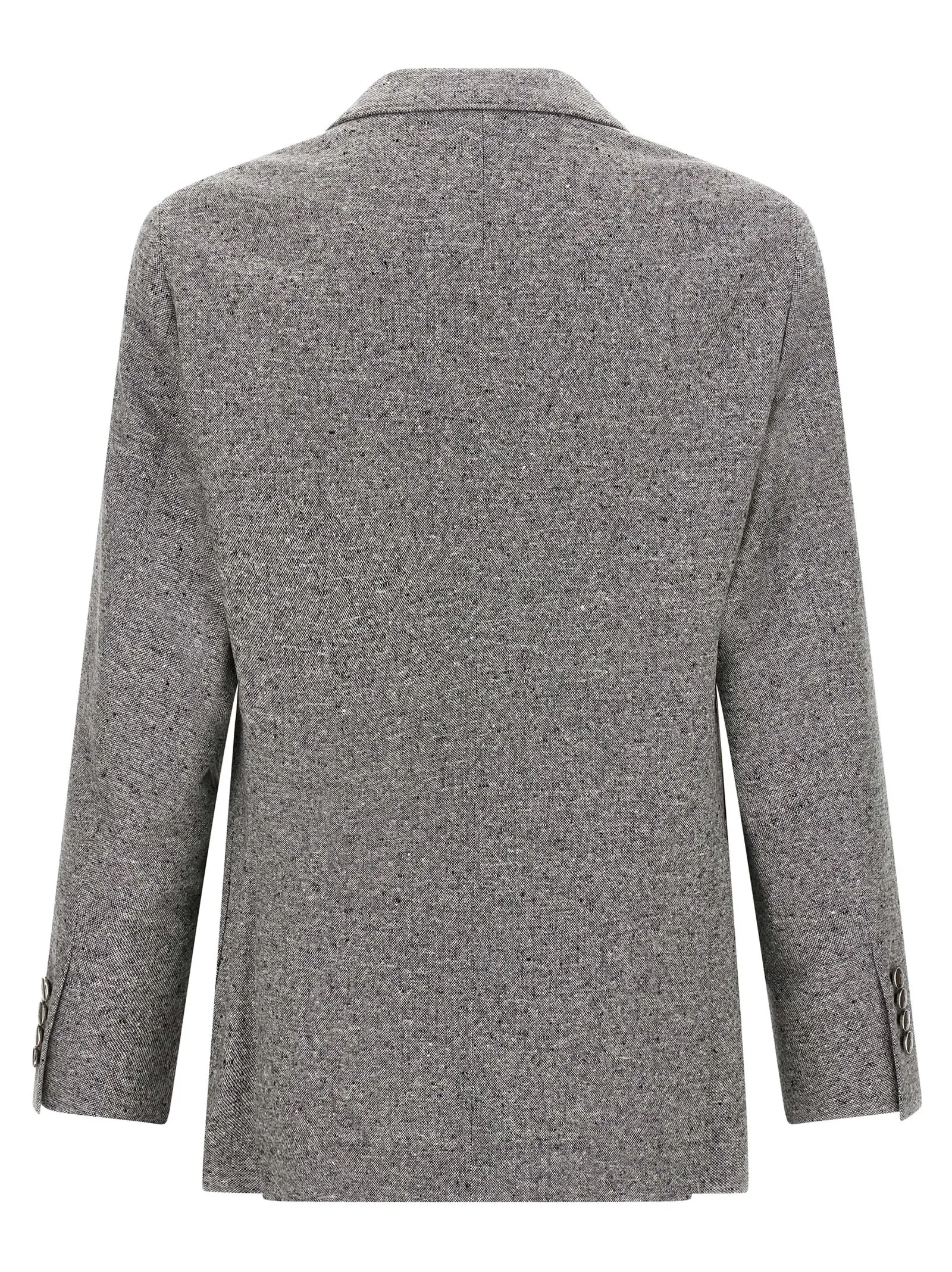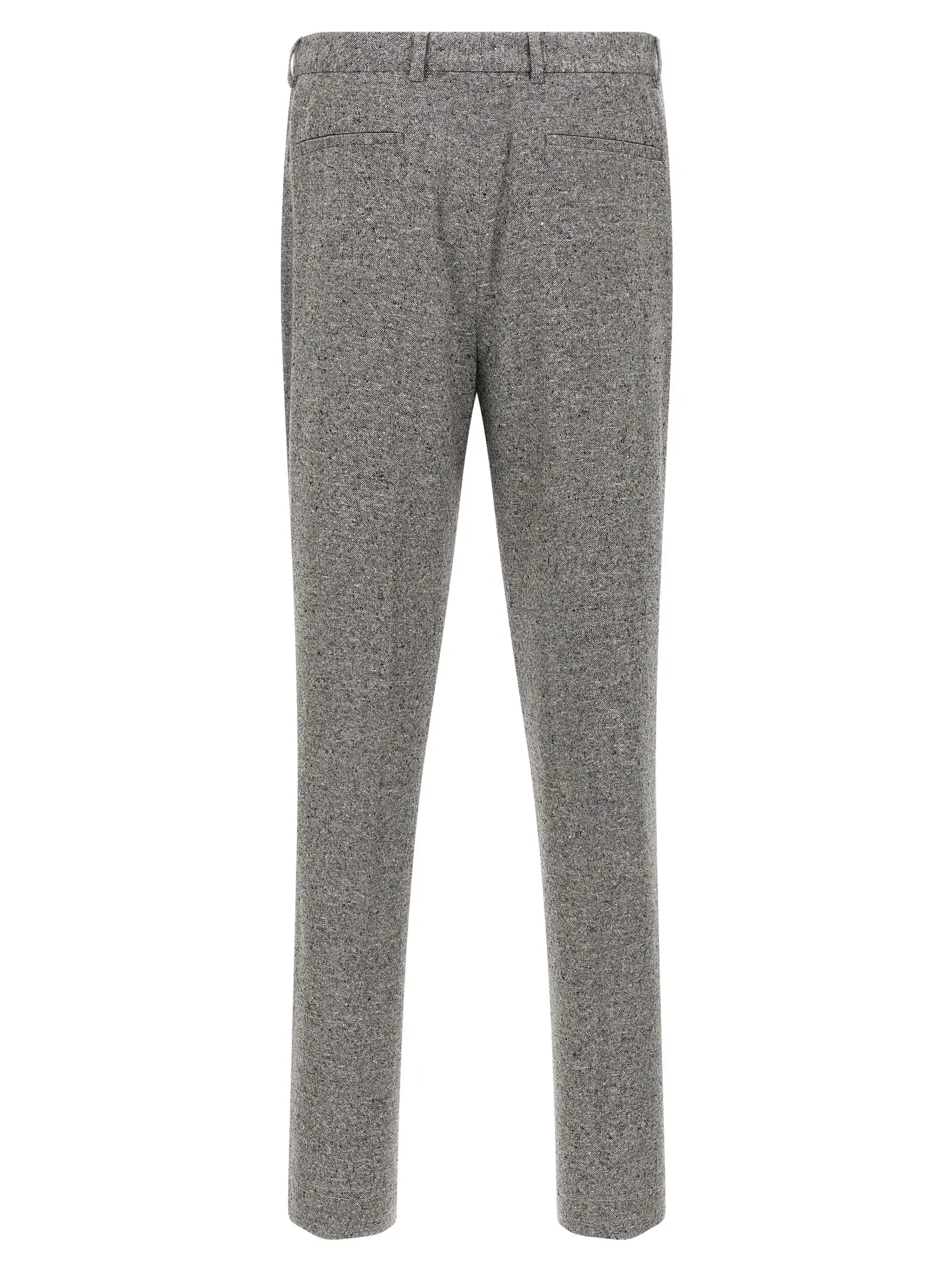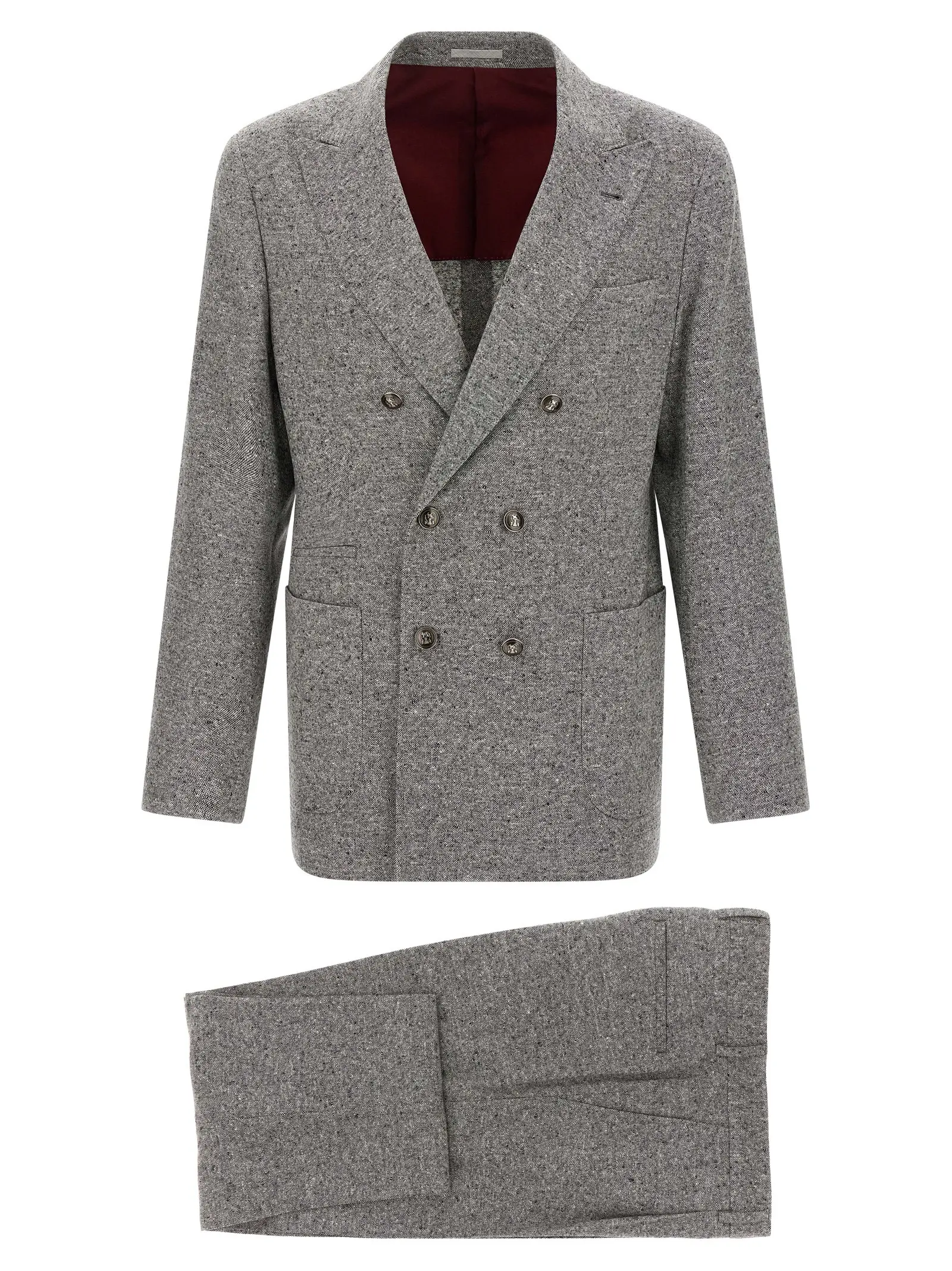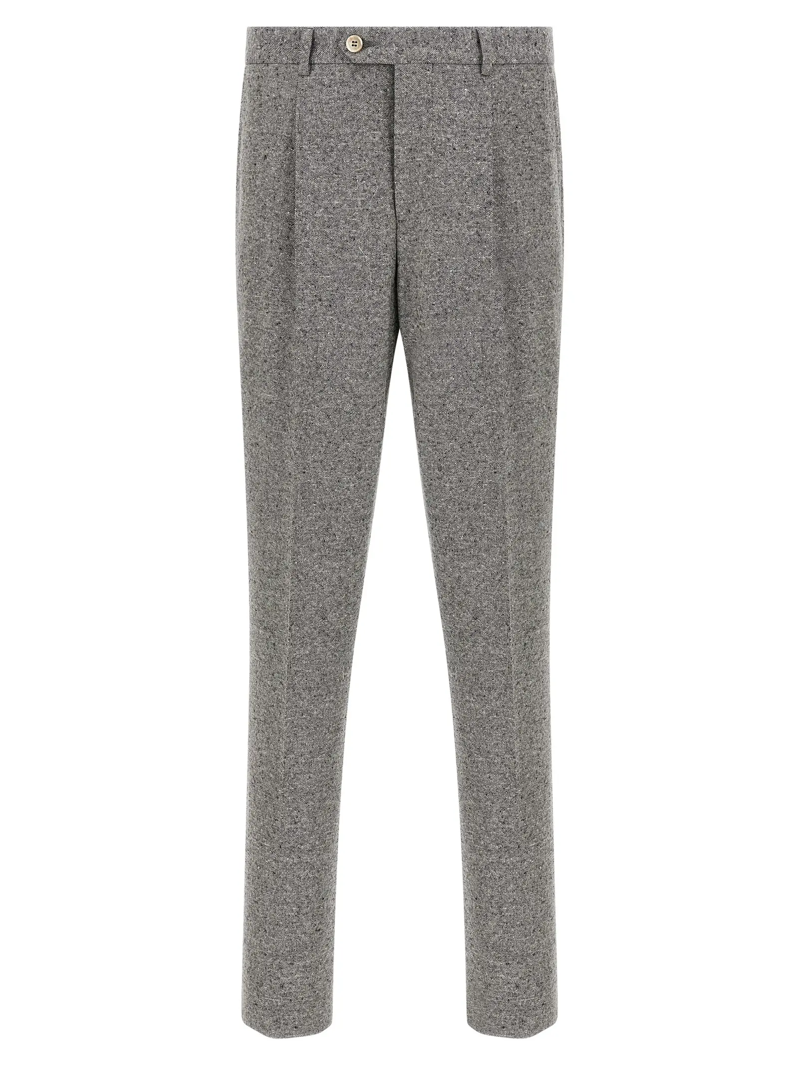 Чоловічий костюм сірого відтінку, виготовлений з натуральної вовни та кашеміру, поєднує елегантність і комфорт завдяки витонченому дизайну з однобортним піджаком на ґудзиках і прямими брюками з еластичними складками. Цей вишуканий ансамбль підкреслює статус і бездоганний стиль, забезпечуючи універсальність для будь-яких важливих подій.