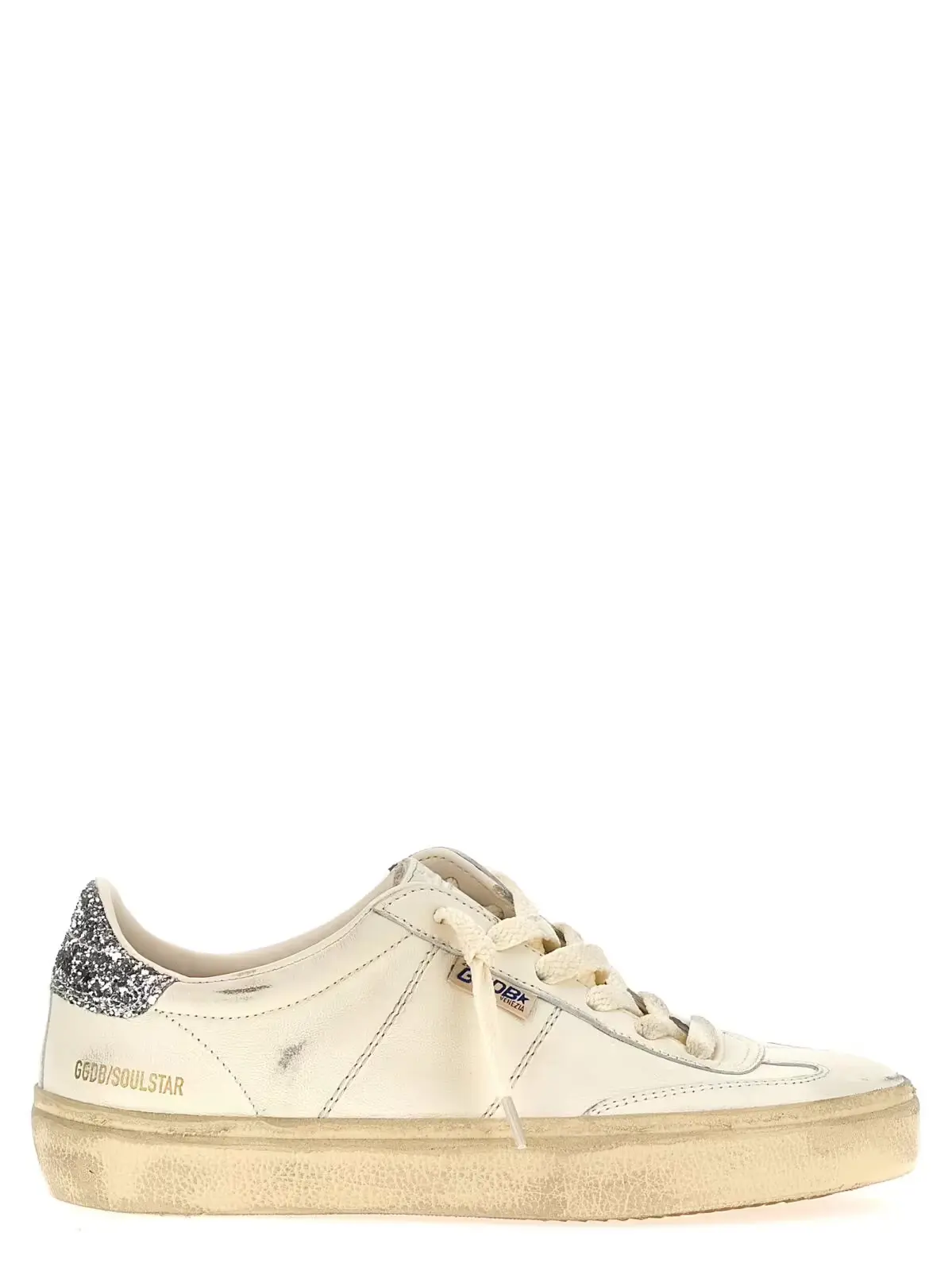 Golden Goose Soul Star Білі жіночі ‘Soul Star’ шкіряні кросівки з блискучим підбором, потерті елементи, шнурівка, гумова підошва. Ці ексклюзивні кросівки виготовлені з високоякісної овечої шкіри (84%) та коров’ячої шкіри (16%), що забезпечує їхню м’якість та довговічність. Унікальний дизайн з блискучим підбором та ефектом зношеності додає неповторного шарму і робить їх справжньою окрасою будь-якого гардеробу. Шнурівка гарантує надійну фіксацію, а гумова підошва забезпечує комфорт при кожному кроці. Виріб поєднує в собі інноваційні матеріали та бездоганну якість, що відрізняє його від інших. Універсальний стиль цих кросівок дозволяє легко інтегрувати їх у будь-який образ, від повсякденного до більш вишуканого. Golden Goose Soul Star підкреслюють статус та витончений смак своєї власниці, створюючи відчуття розкоші та ексклюзивності. Це ідеальний вибір для тих, хто цінує стиль, якість і унікальність у кожній деталі, надаючи впевненість і комфорт у повсякденному житті.