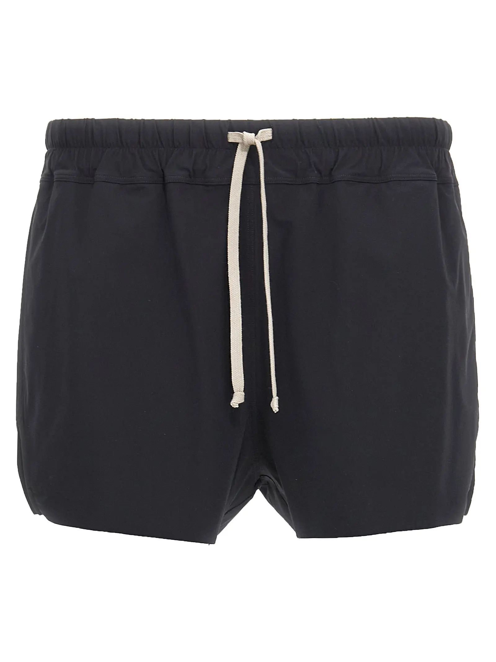 Еластичний пояс зі шнурком, кишені, бічні розрізи та необроблений край. 79% нейлон, 21% еластан. Внутрішня сіт