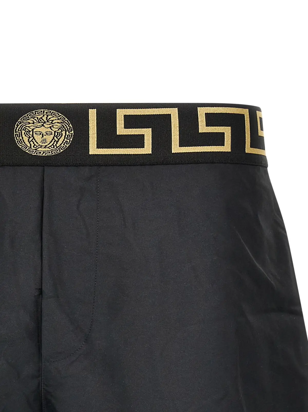 Купальник Versace Greca в багатокольоровому виконанні втілює елегантність і сучасний стиль. Виготовлений з високоякісного нейлону, він забезпечує комфорт і довговічність, підкреслюючи інноваційний підхід бренду. Еластичний пояс з логотипом Greca, зручні кишені та внутрішні сітчасті шорти додають практичності, а яскравий дизайн робить його універсальним елементом гардеробу для будь-якого літнього відпочинку. Цей купальник стане символом статусу та витонченого смаку.