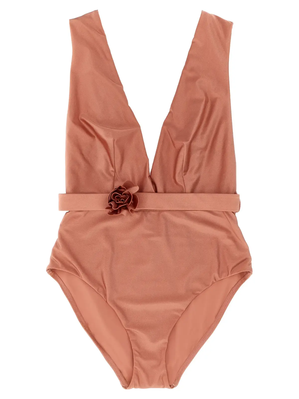 Вишуканий рожевий купальник з глибоким вирізом спереду та ззаду, виконаний із високоякісного поліаміду з еластаном для ідеальної посадки та комфорту. Елегантний дизайн доповнений знімним квітковим поясом, що підкреслює жіночність і надає неперевершеного стилю, створюючи образ справжньої ікони статусу та витонченості.