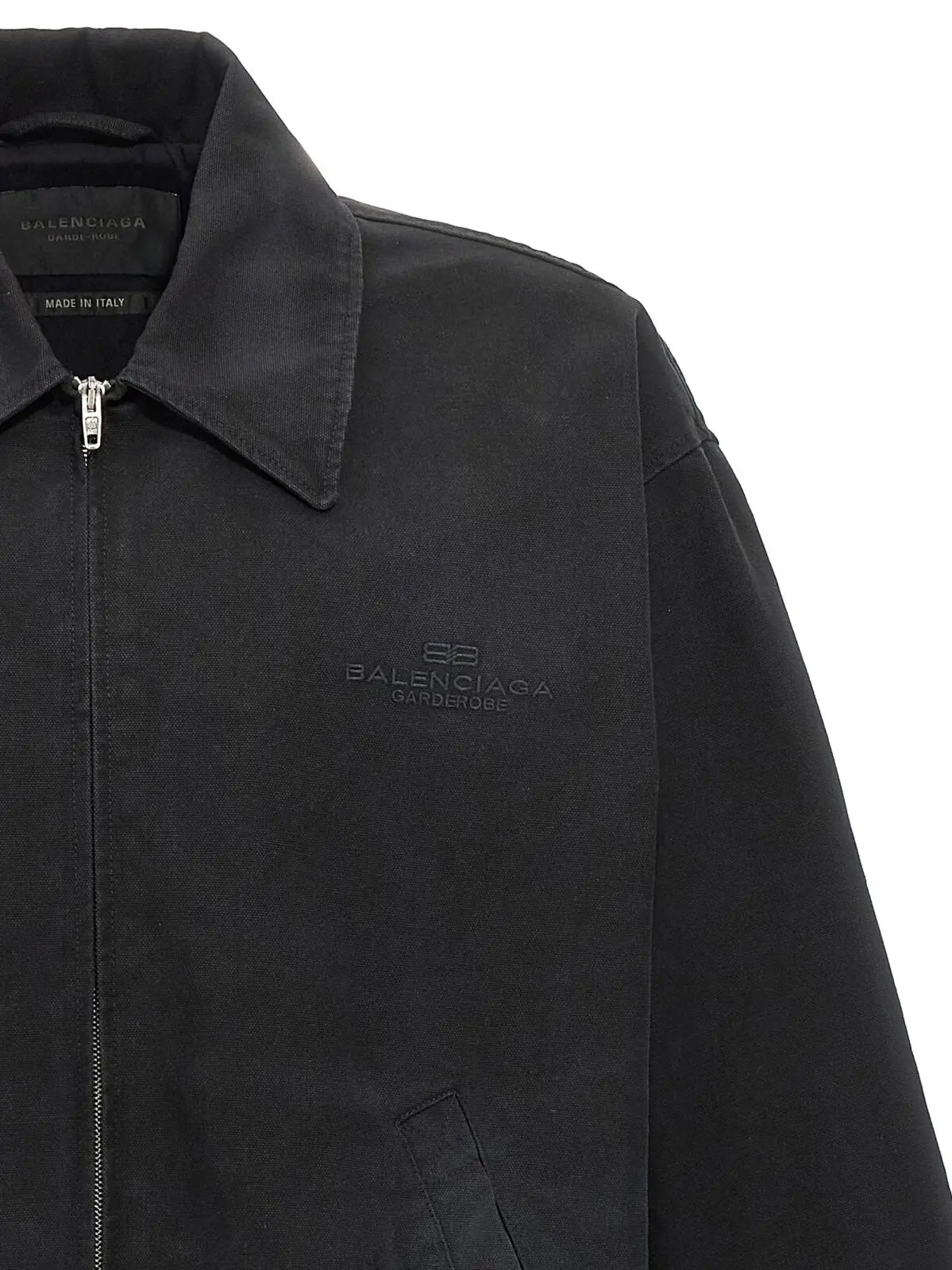 Чорна чоловіча куртка Balenciaga BB Garderobe виготовлена з високоякісного 100% бавовняного канвасу, поєднує в собі сучасний дизайн з витонченим тональним вишиванням. Завдяки купровій підкладці, зручній застібці на блискавку та продуманим деталям ця модель відображає статус, стиль і універсальність для впевнених у собі поціновувачів моди.
