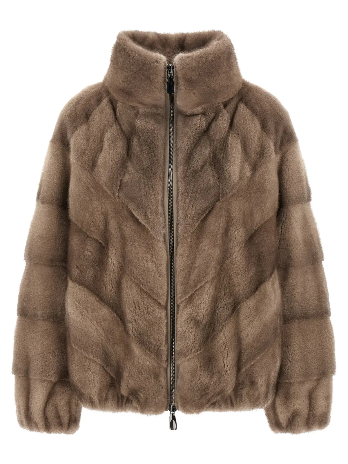 Куртка з хутра норки з візерунком ялинка. Усередині підкладка. Комір-крайтер. Передня застібка на блискавку. Наявні кишені. Довгі рукави з еластичними манжетами. Еластичний низ виробу. Склад 100% норка.