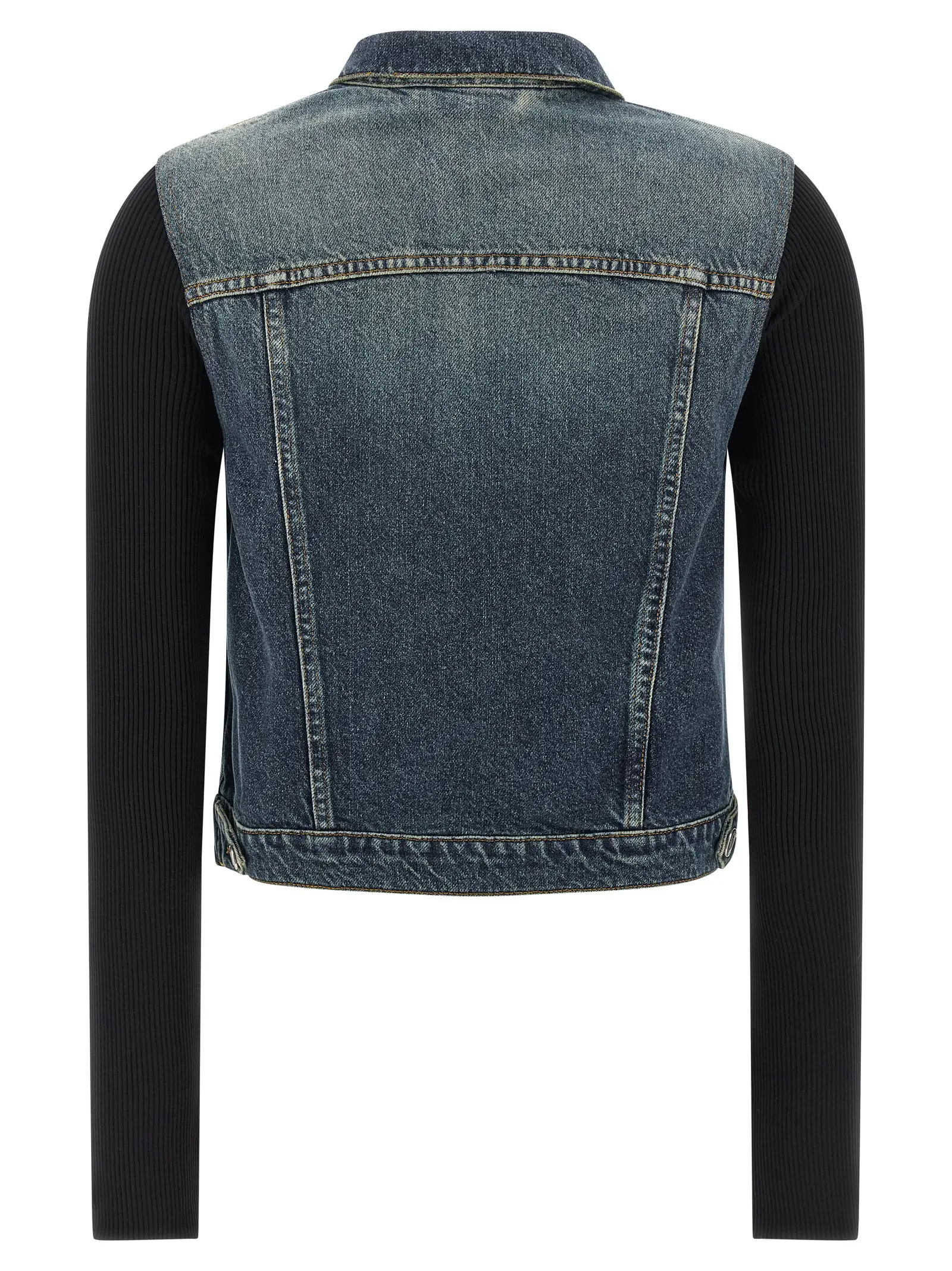 Куртка із деніму stonewashed з контрастною строчкою поєднує класичний дизайн із сучасними матеріалами: довгі рукави з еластичного ребристого трикотажу забезпечують комфорт і свободу рухів, а металевий логотип на манжетах додає вишуканості. Вишукана якість 100% бавовни підкреслює статус і стиль, роблячи цю модель універсальним вибором для будь-якого образу.