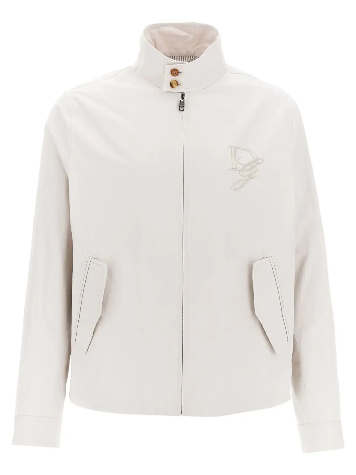 Ця бежева куртка Dolce Gabbana, виготовлена з 100% бавовни, вражає елегантним дизайном з тональним вишитим логотипом спереду. Модель оснащена застібкою на блискавці, високим коміром з кнопковим закриттям, підкладкою, кишенями та довгими рукавами з манжетами. Інноваційний підхід до виконання підкреслює бездоганну якість та універсальність, що робить цю куртку ідеальним вибором для стильних чоловіків, які цінують статус та вишуканість у кожному образі.