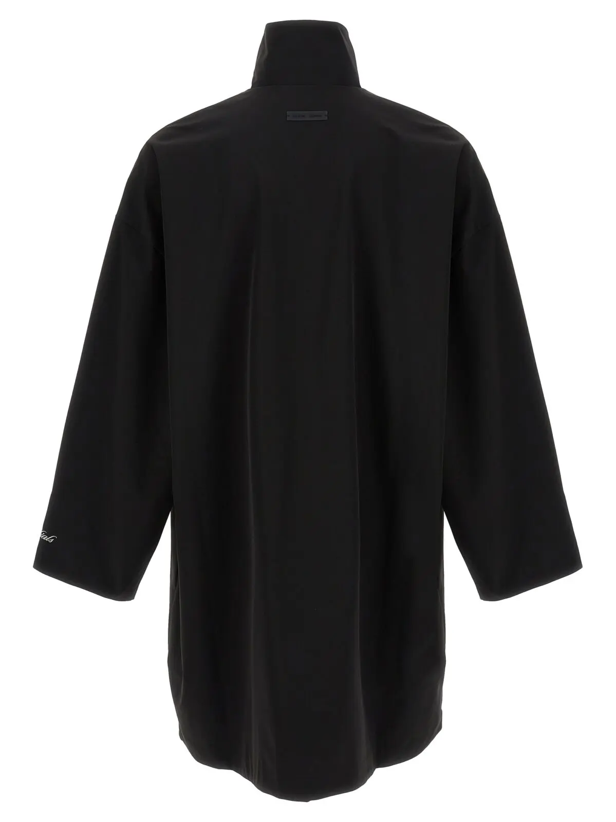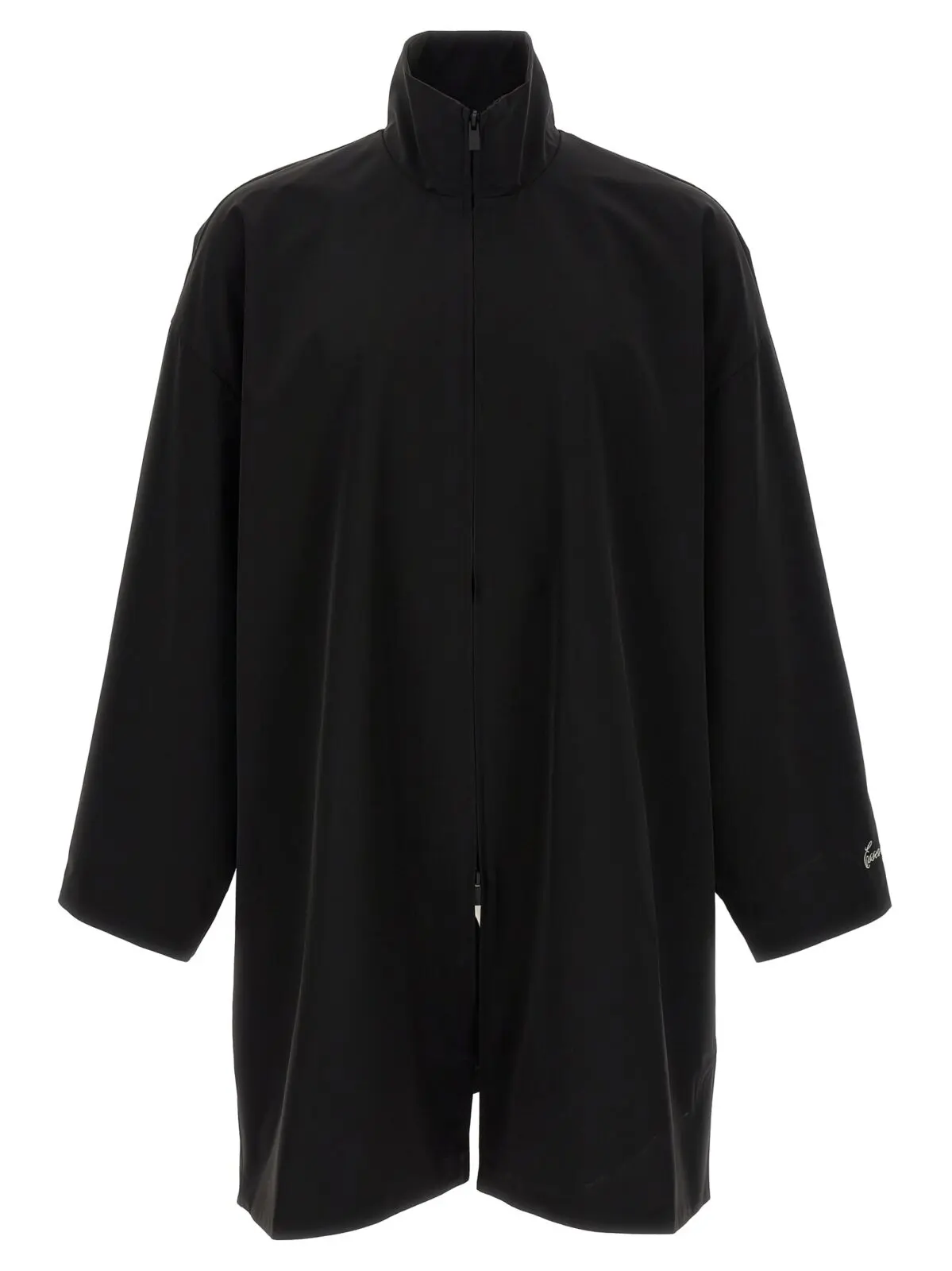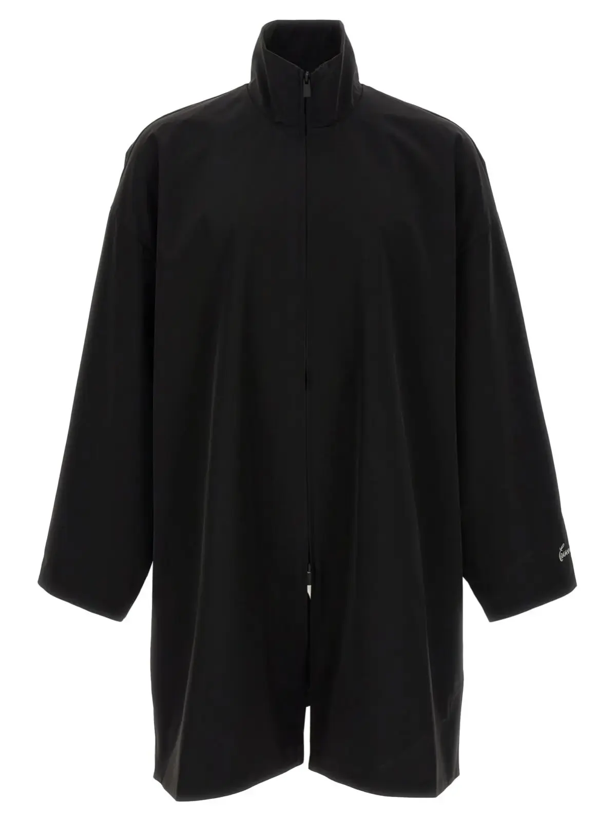 Чоловіча куртка з водонепроникного нейлону преміум-класу, виконана у витонченому чорному кольорі з високим коміром та передньою застібкою на блискавку. Довгі рукави прикрашені контрастною вишивкою логотипу на манжетах, що підкреслює стильність і статус власника, поєднуючи інноваційність матеріалів із універсальністю для сучасного гардеробу.