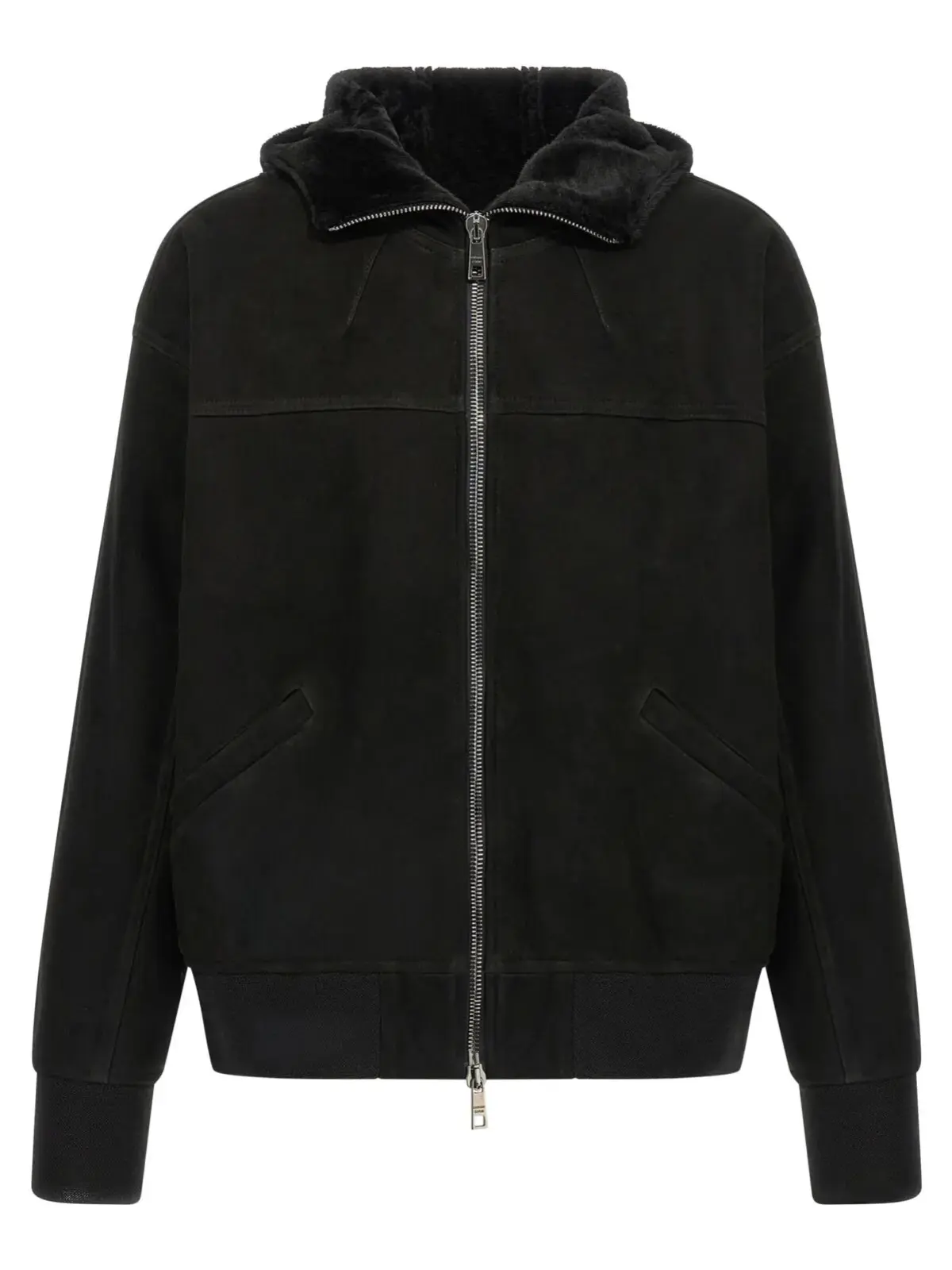 Чорна чоловіча куртка з капюшоном Giorgio Brato виконана з натуральної овечої шкіри найвищої якості та доповнена деталями з бавовняного пике. Вишуканий дизайн з довгими рукавами на манжетах, фронтальна застібка на блискавку та практичні кишені поєднують стиль і функціональність, підкреслюючи статус і елегантність сучасного чоловіка.