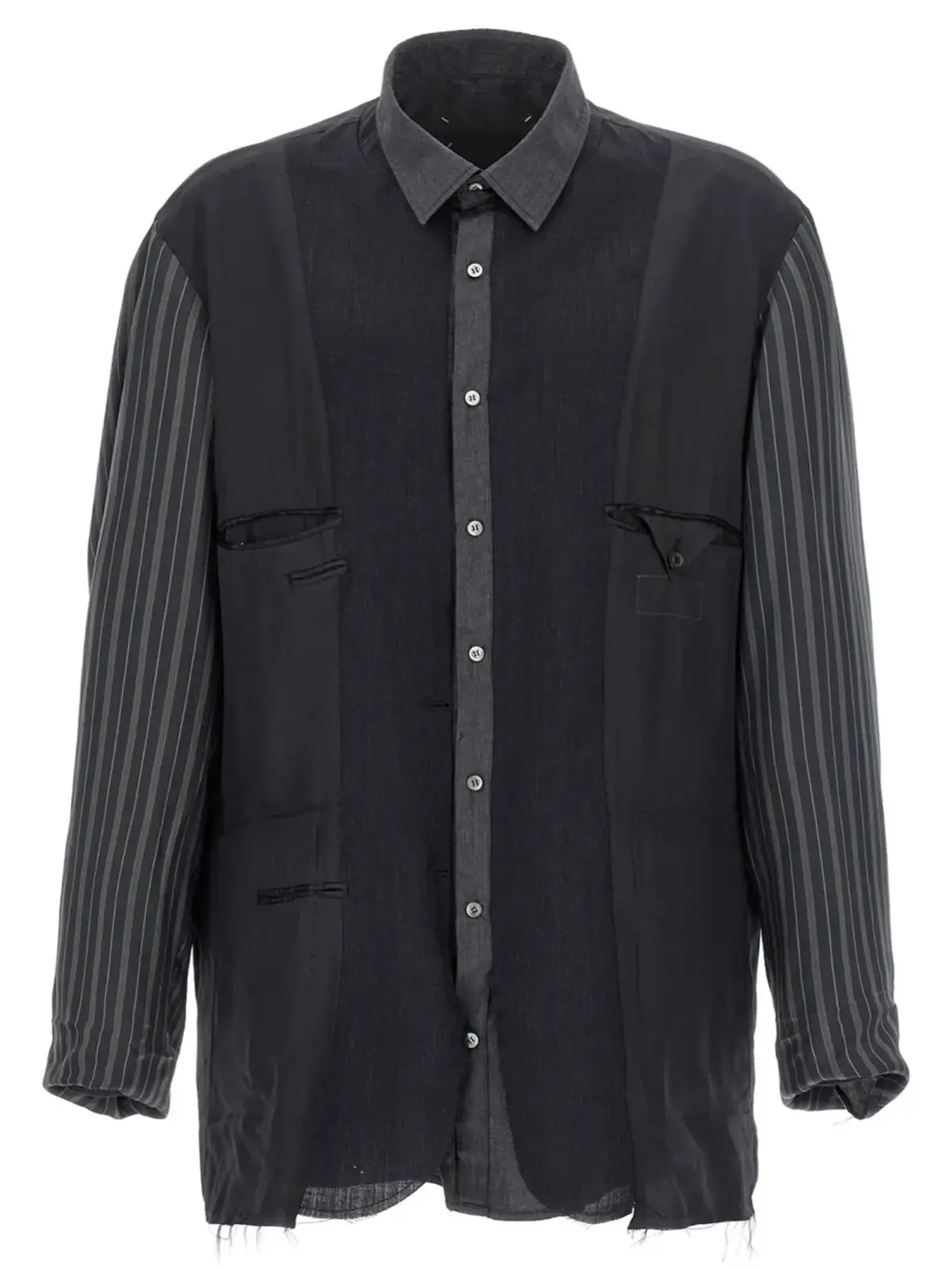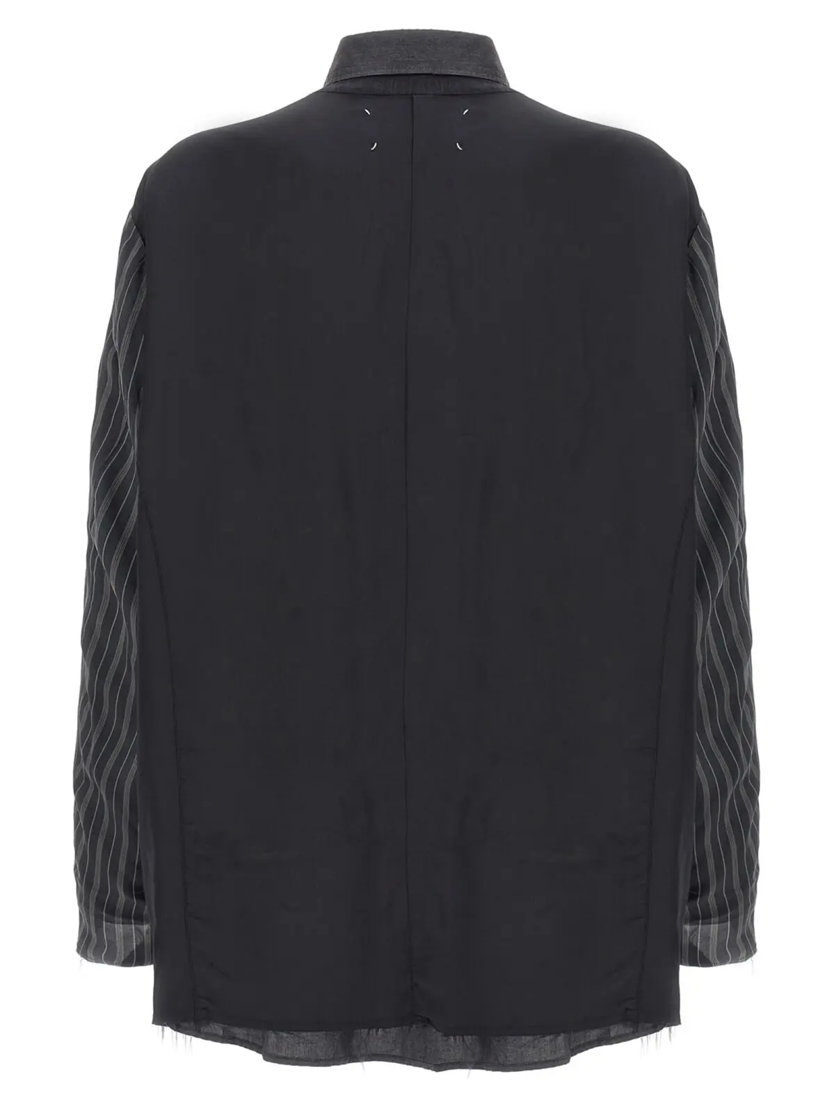 Ця чоловіча куртка Maison Margiela виконана з вишуканої суміші мохеру та вовни, поєднуючи інноваційність двостороннього дизайну з елегантністю класичного коміра сорочки. Унікальна техніка клаптикового шиття підкреслює витонченість та універсальність, створюючи статусний образ для будь-яких подій.