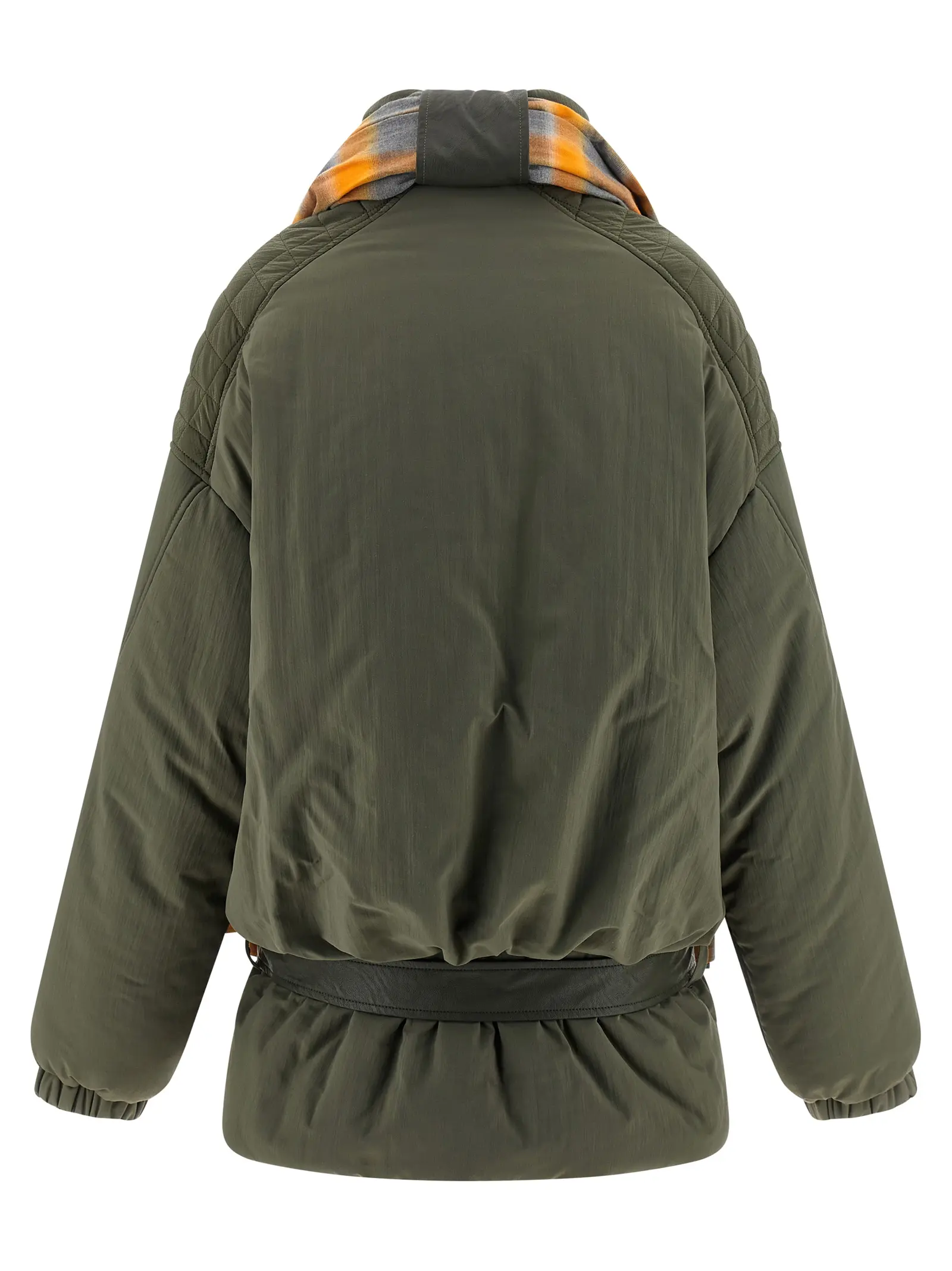 Куртка MARBELL Amy виконана з високоякісного технічного поліамідного матеріалу з вишуканою стьобаною фактурою, що поєднує інноваційність і комфорт. Елегантний стоячий комір, знімний шарф і ремінь зі шкірозамінника підкреслюють універсальний стиль та статус, створюючи неперевершений образ сучасної впевненої жінки.