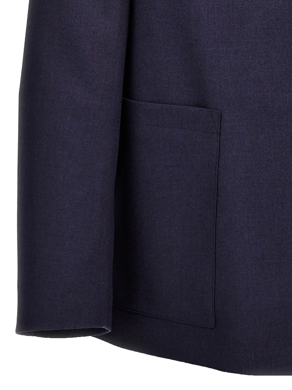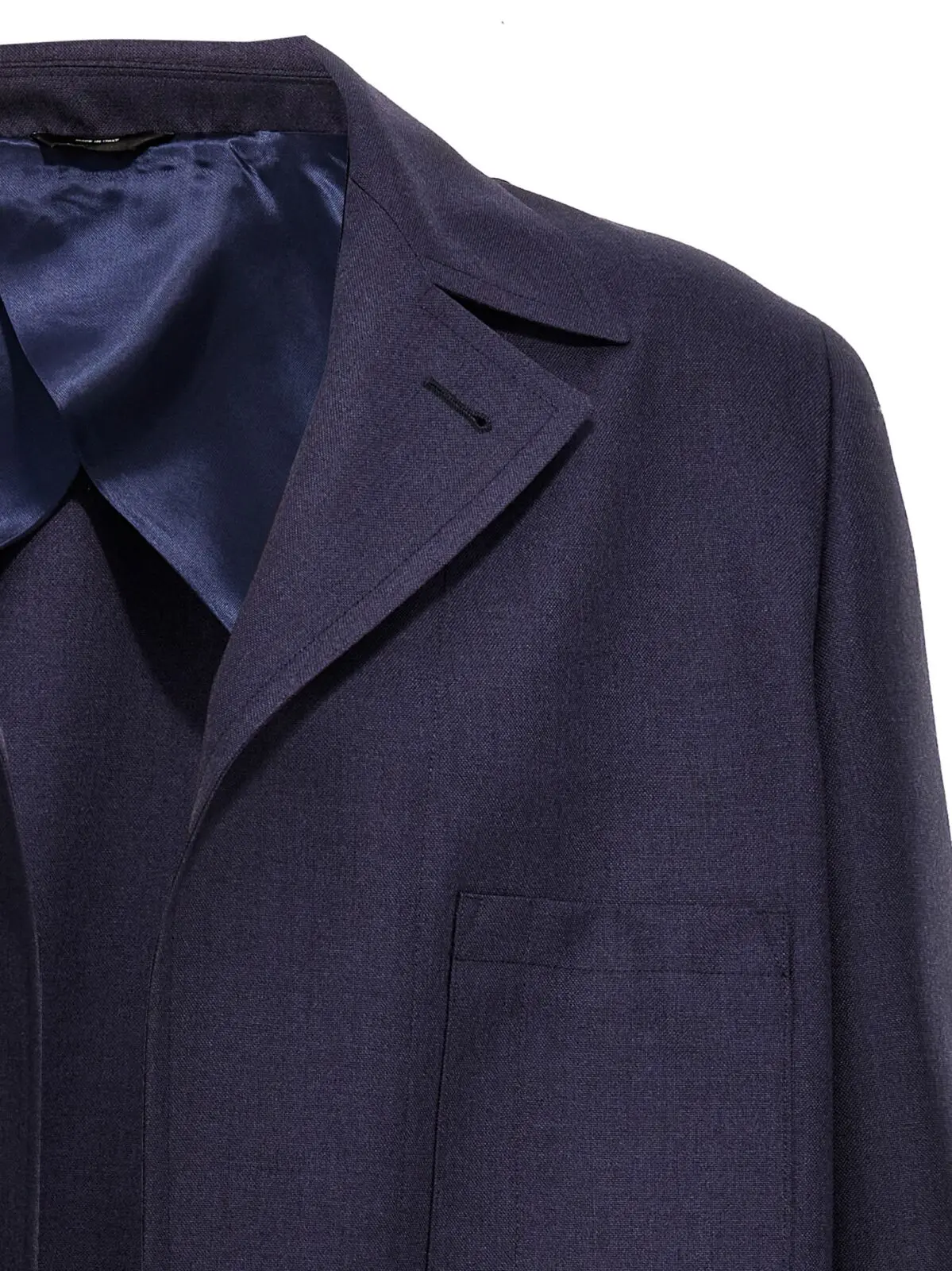 Чоловіча однобортна вовняна куртка з внутрішньою застібкою на ґудзики, нагрудними кишенями, мартингалем на спинці та коміром-солдатком. Куртка виготовлена з 100% цільної вовни Fendi синього кольору, ідеально підходить для створення стильного та вишуканого образу.
