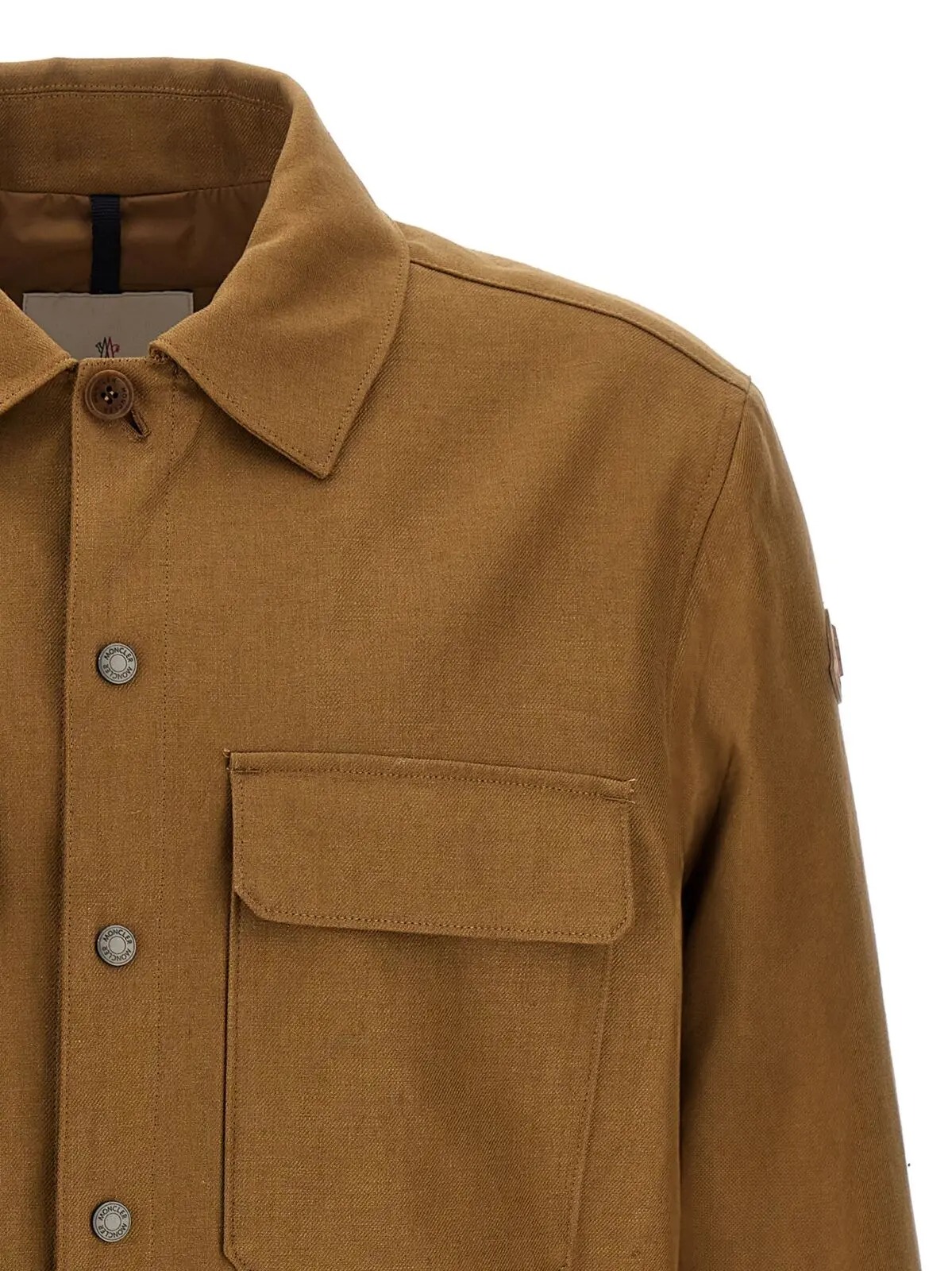 Чоловіча куртка Moncler Callaqui вишуканого коричневого відтінку поєднує натуральний льон із сучасним поліестером, забезпечуючи комфорт і довговічність. Елегантний дизайн із коміром-сорочкою, застібками на блискавку та кнопки, а також фірмовою шкіряною емблемою підкреслює статус і стиль, роблячи цю модель універсальним вибором для будь-яких випадків.