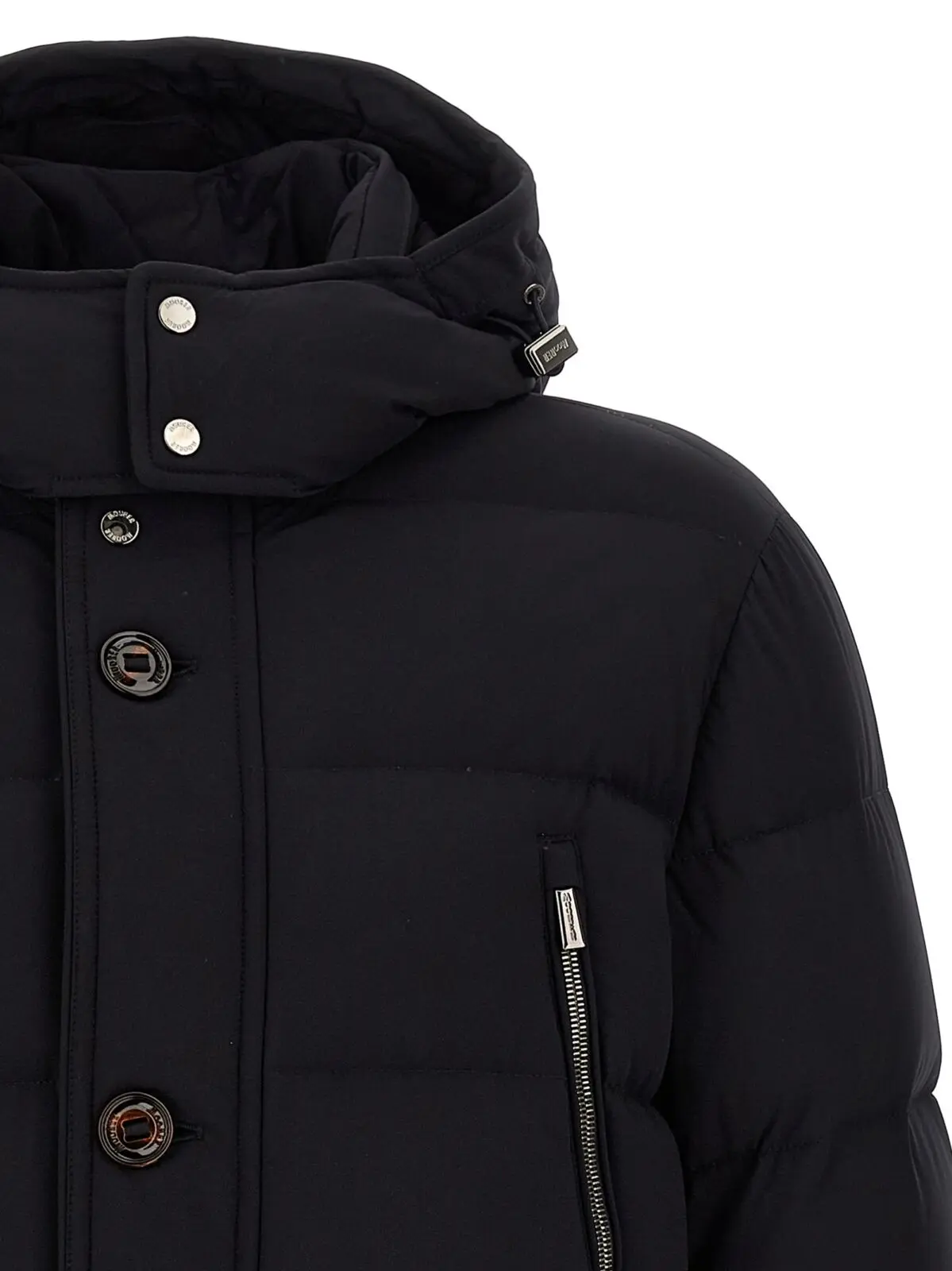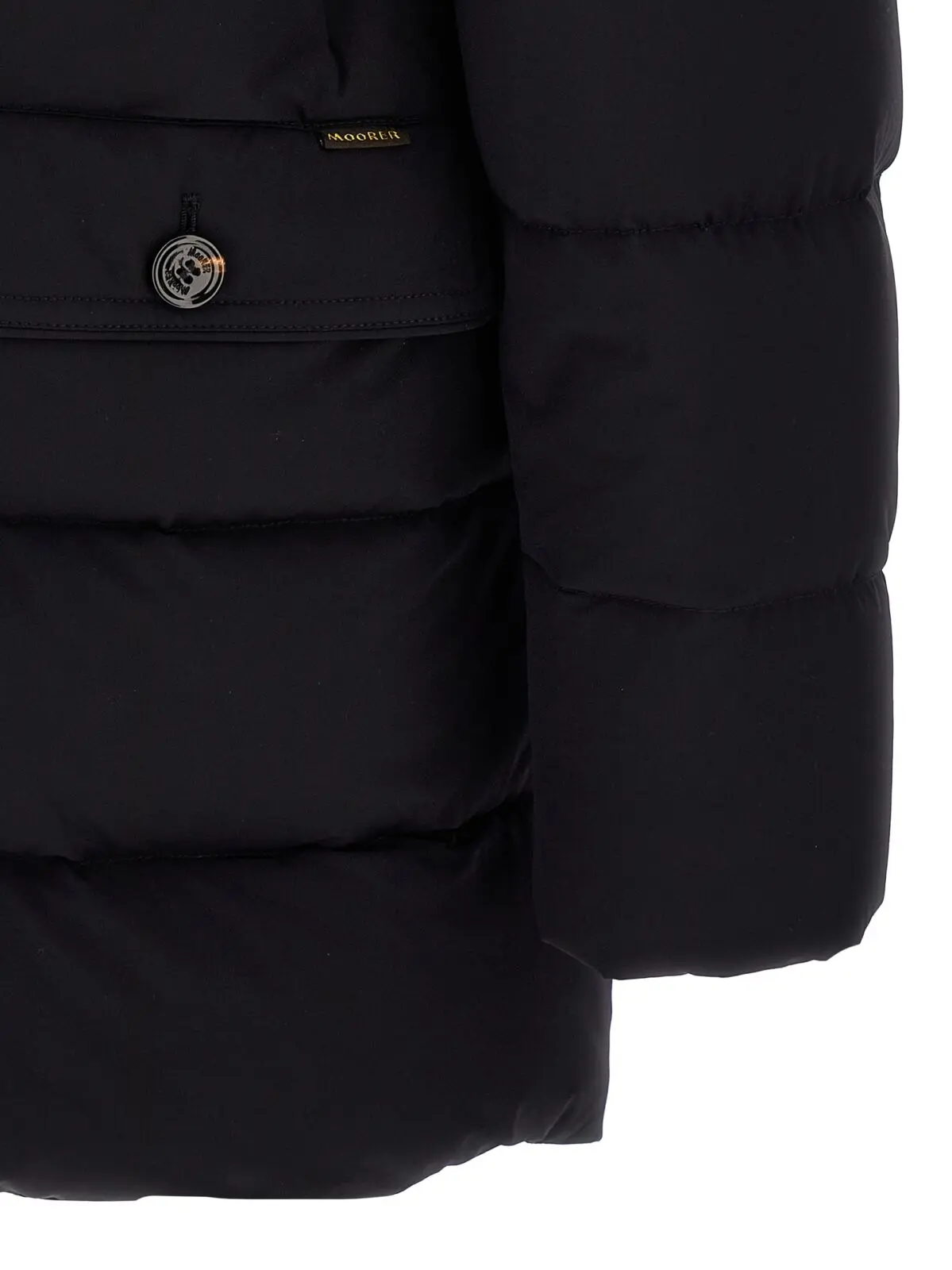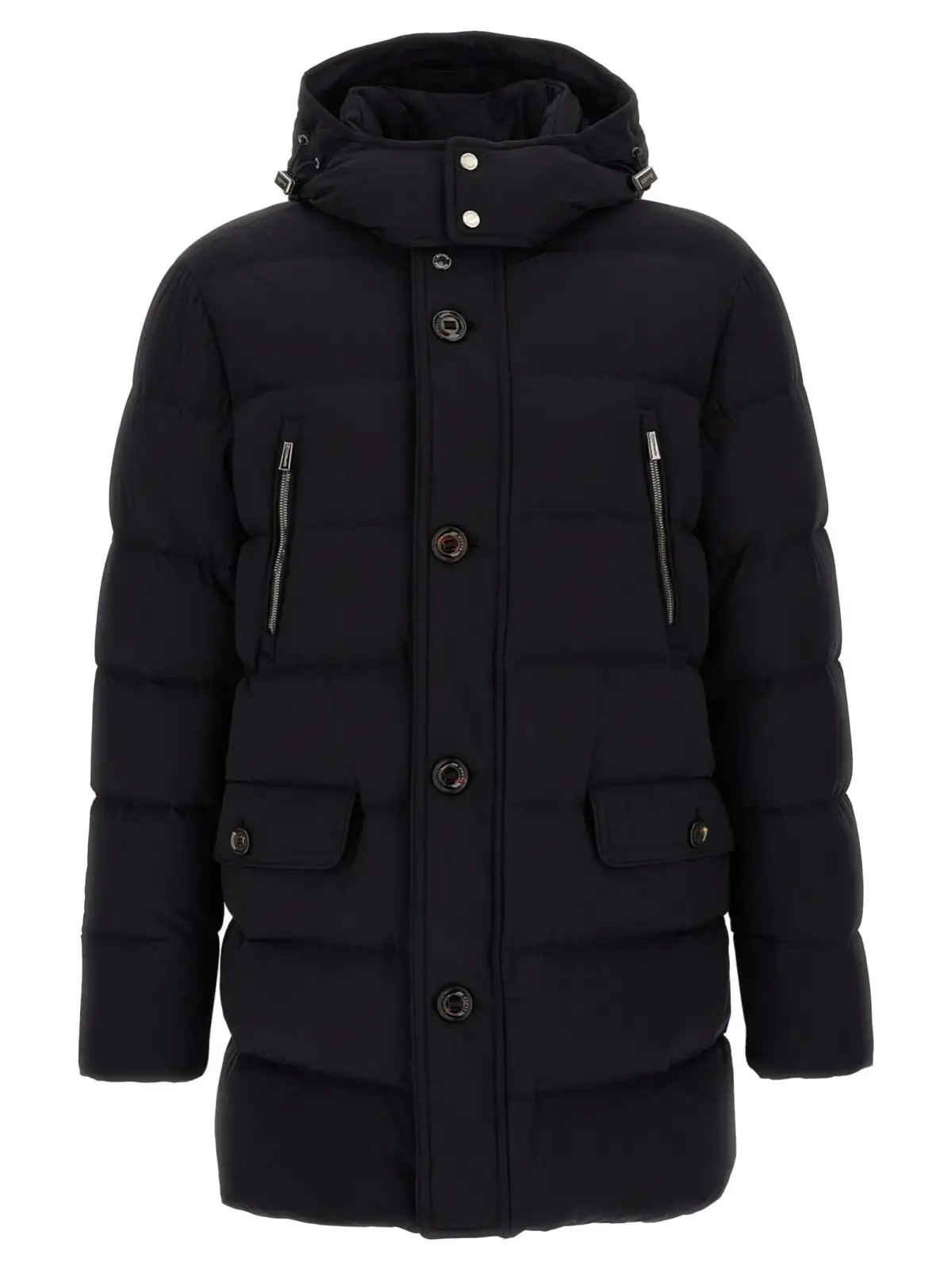 Чоловіча пухова куртка Moorer Gorner у глибокому темно-синьому відтінку виконана з водовідштовхувальної еластичної тканини високої якості, наповнена натуральним гусячим пухом для оптимального комфорту й тепла. Вишуканий дизайн з високим коміром, знімним капюшоном на затяжці та передньою застібкою на блискавку і ґудзики поєднує стиль і функціональність, підкреслюючи статус і бездоганний смак власника.