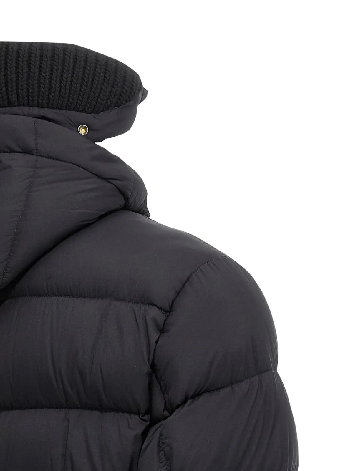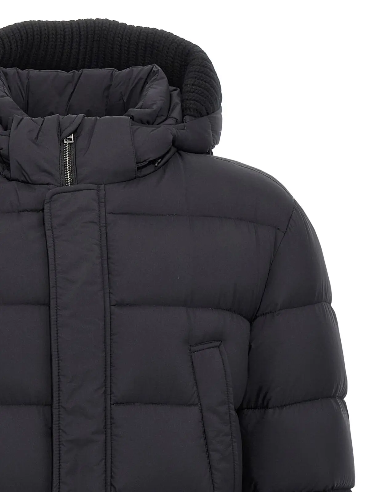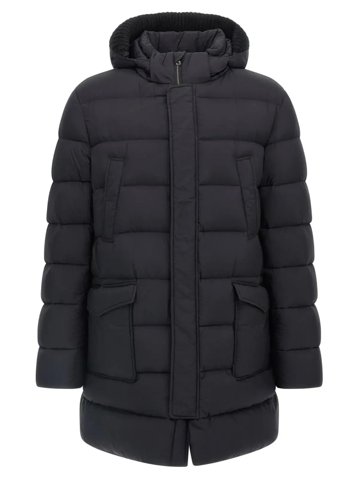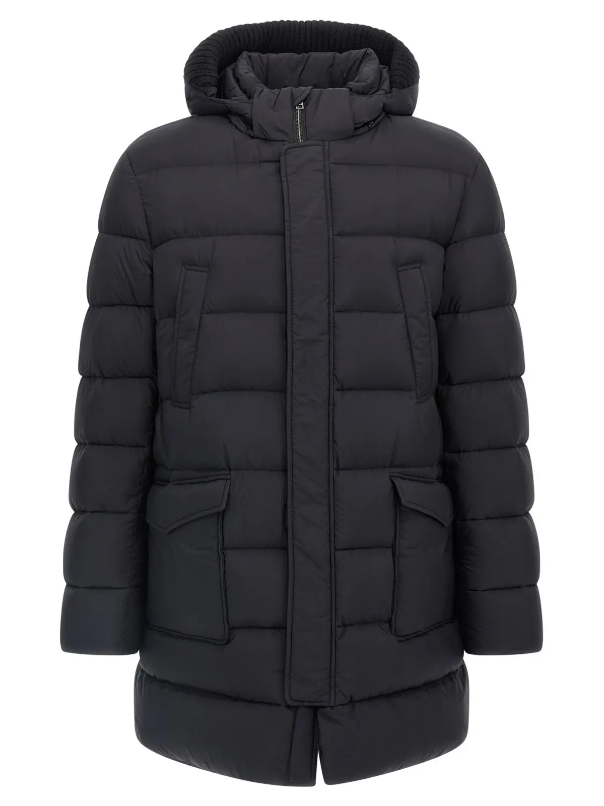 Чорна куртка-пуховик Herno Il Parka виготовлена з високоякісного нейлонового мікрофібрового матеріалу з водовідштовхувальним ефектом, наповнена натуральним гусячим пухом для максимальної теплоти. Вишуканий дизайн доповнює знімний капюшон зі стрейчевою в’язкою, передня застібка на блискавку та кнопки, а також практичні кишені, що підкреслюють універсальність і стильність цього елегантного виробу, створеного для впевнених у собі чоловіків.
