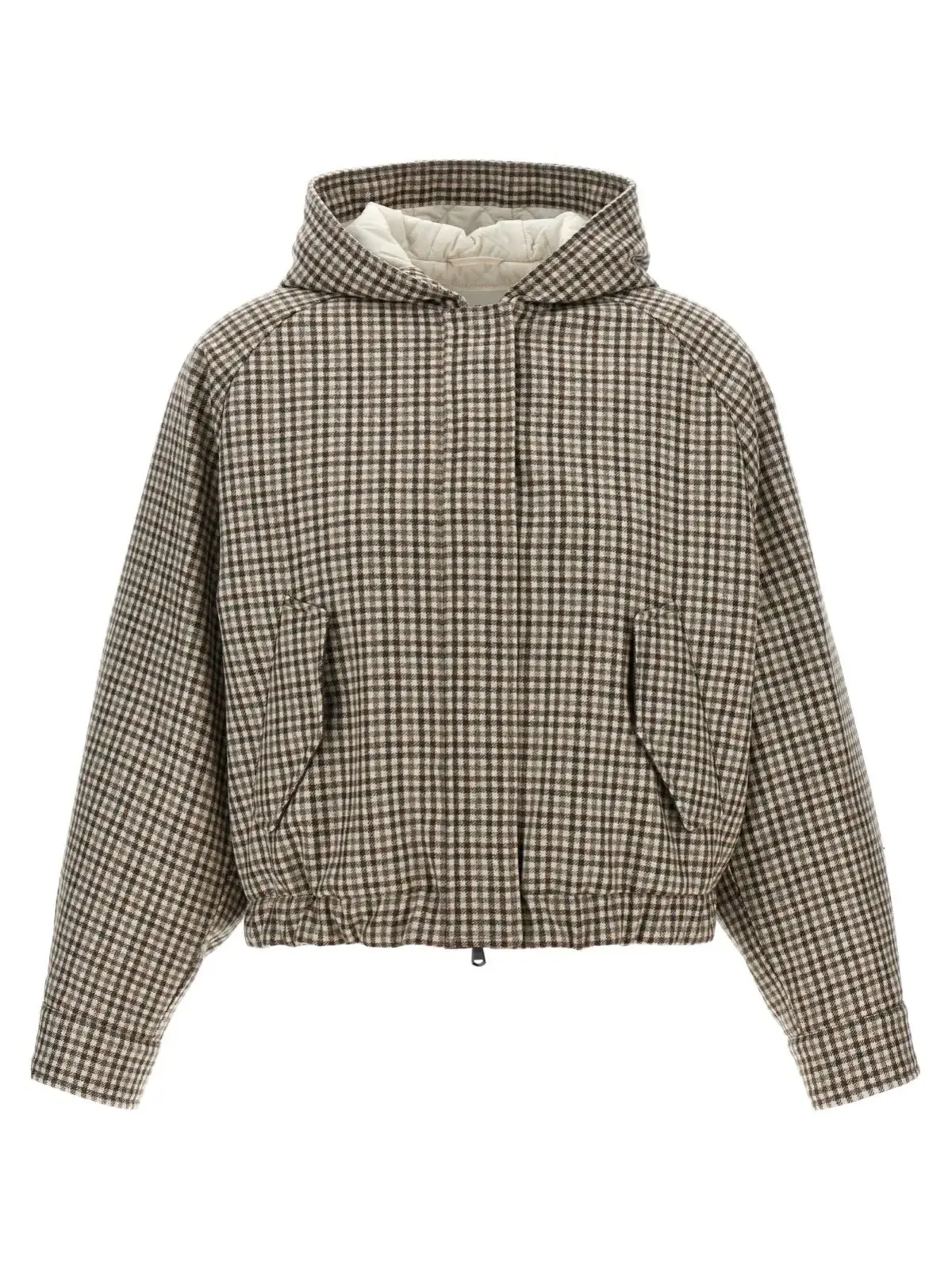 Куртка в клітинку Shiny Zipper Pull Brunello Cucinelli Бежева
