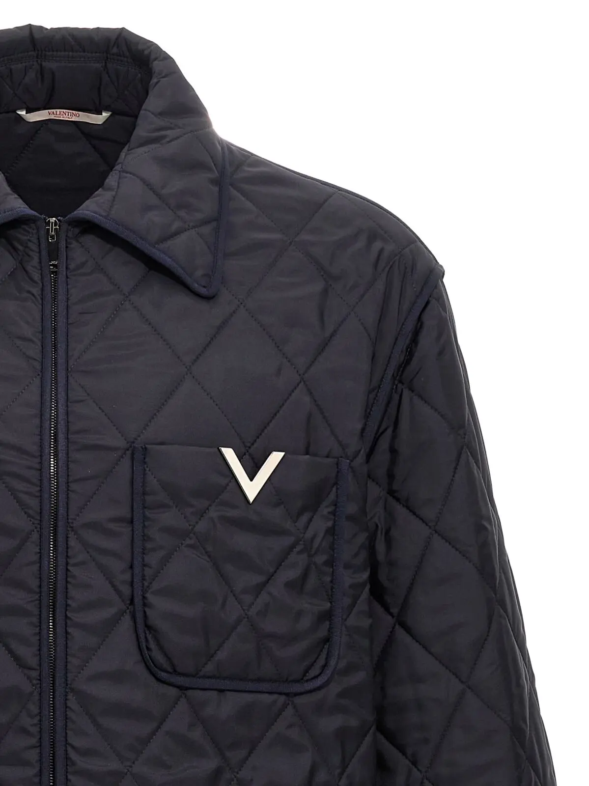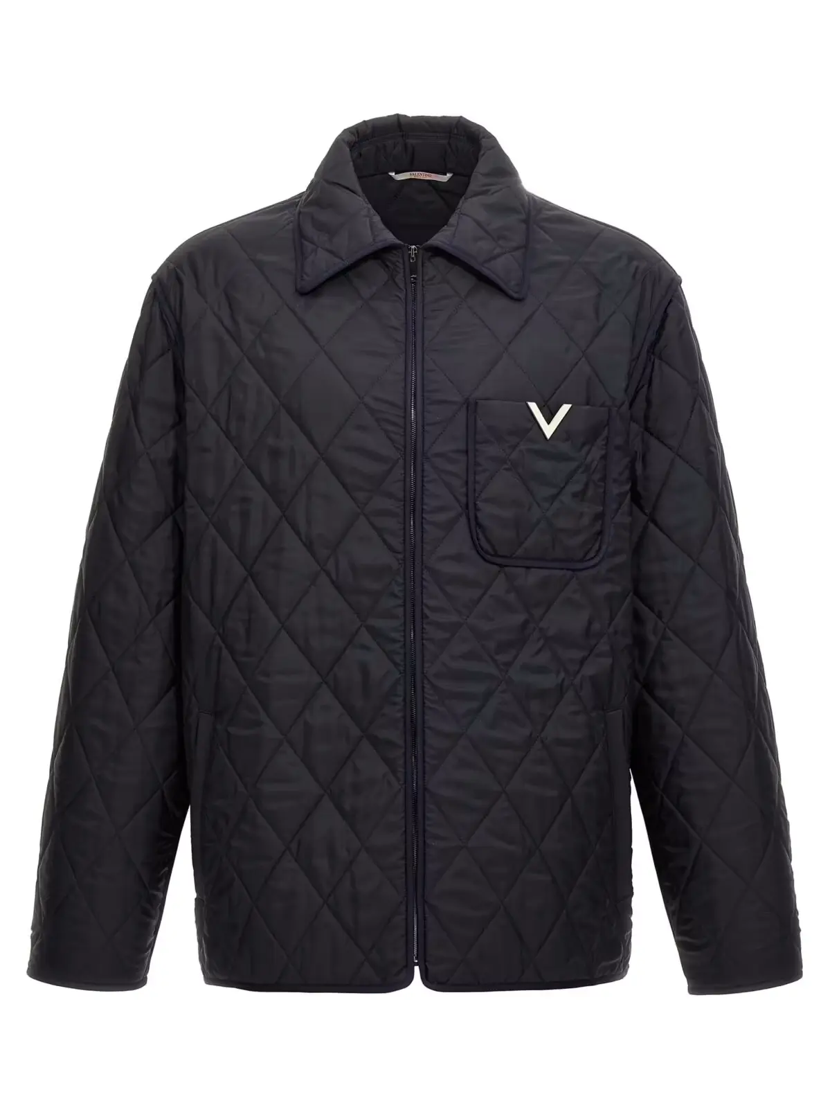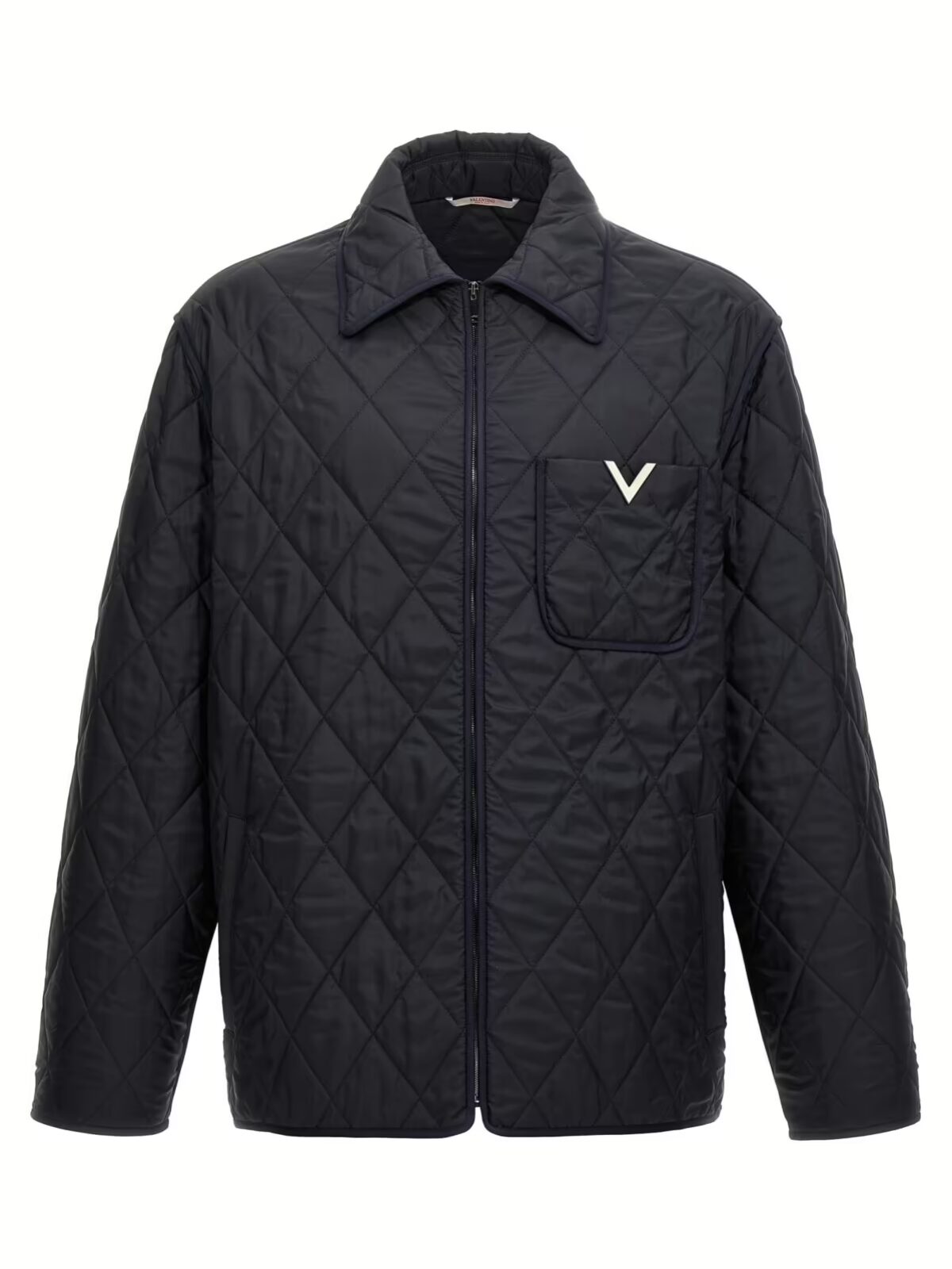 Куртка Valentino Garavani V Detail – втілення елегантності та стилю. Ця синя чоловіча куртка зшита з високоякісного стьобаного нейлону, що забезпечує комфорт та довговічність. Центральна блискавка дозволяє легко одягати та знімати куртку, а передня кишеня з металевим декором у вигляді літери “V” додає особливого шарму.