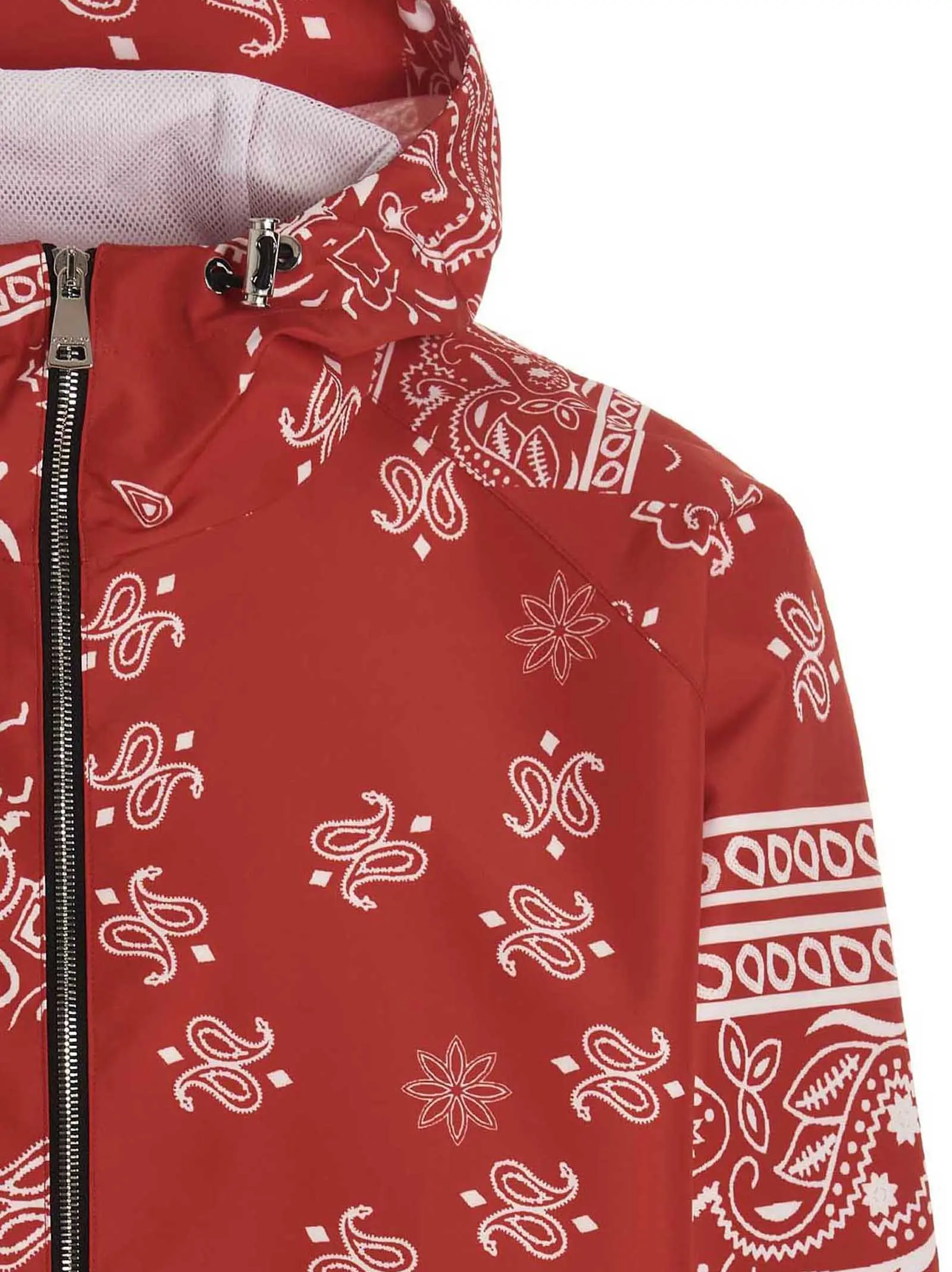 Куртка Windbreaker Bandana Hood від Khrisjoy – це червона чоловіча куртка з нейлону з усіма надруками, застібкою-блискавкою, кишенями та довгими рукавами з регульованими манжетами.