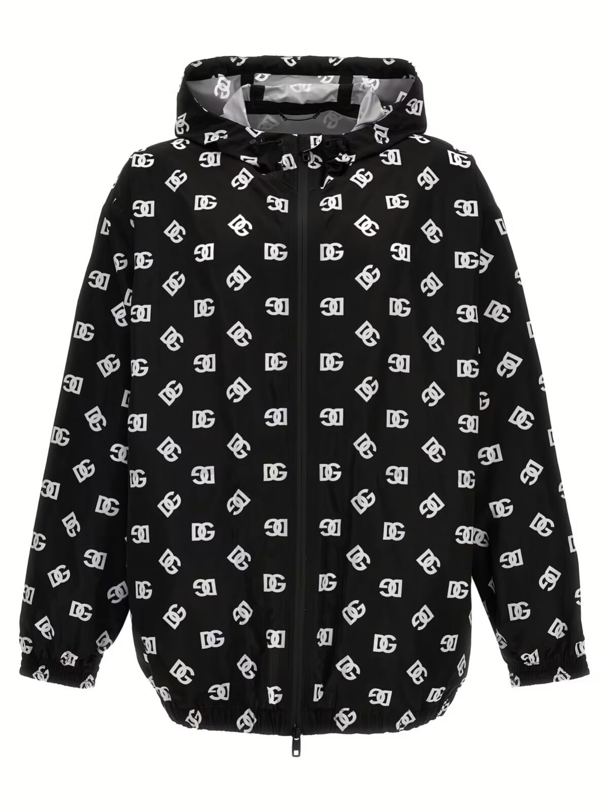Купуйте чоловічу куртку з капюшоном та логотипом Dolce & Gabbana. Чорно-білий дизайн з усіма знаками логотипу, виготовлений з нейлону. Куртка має блискавку, кишені, довгі рукава з еластичними манжетами, а також регульований шнурок на низу. Виготовлена з 100% поліестеру.