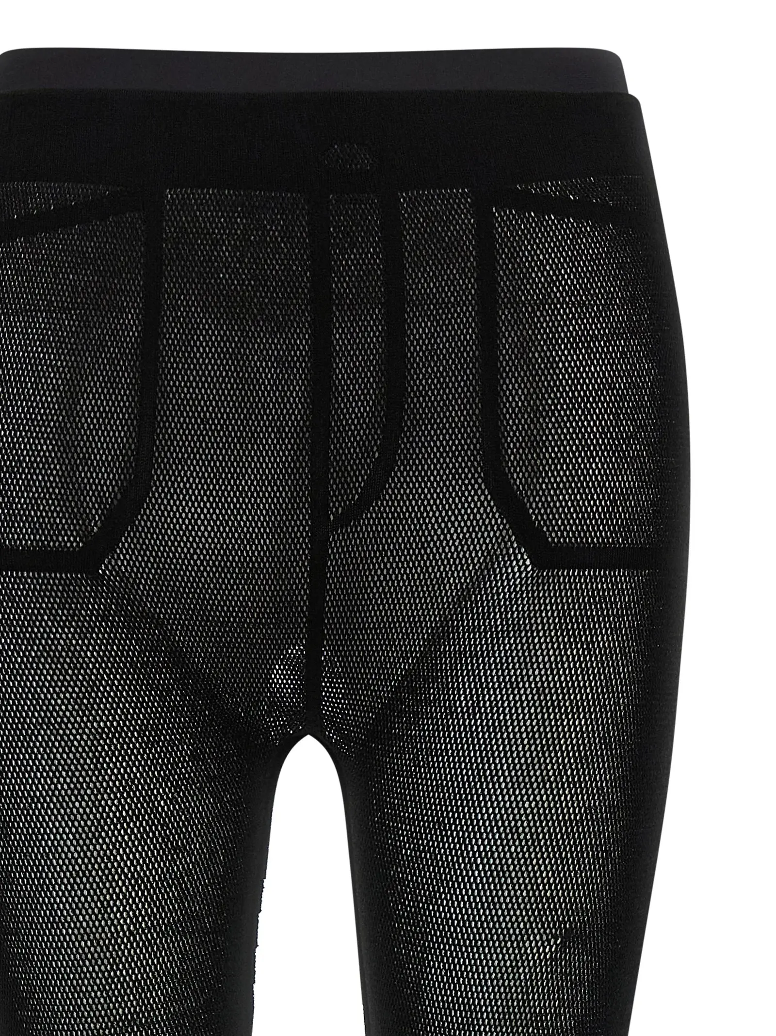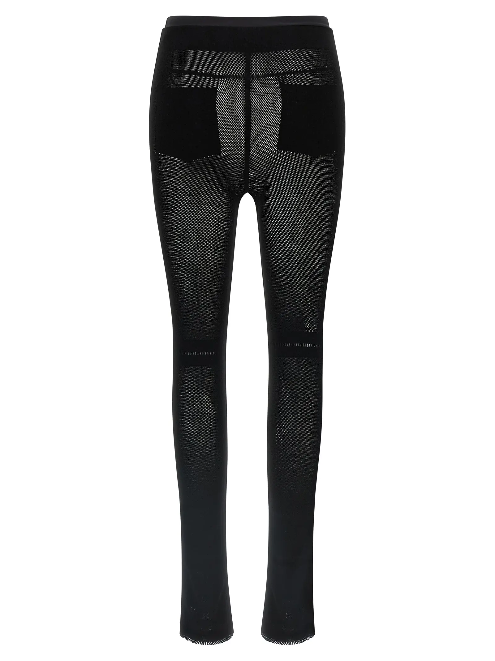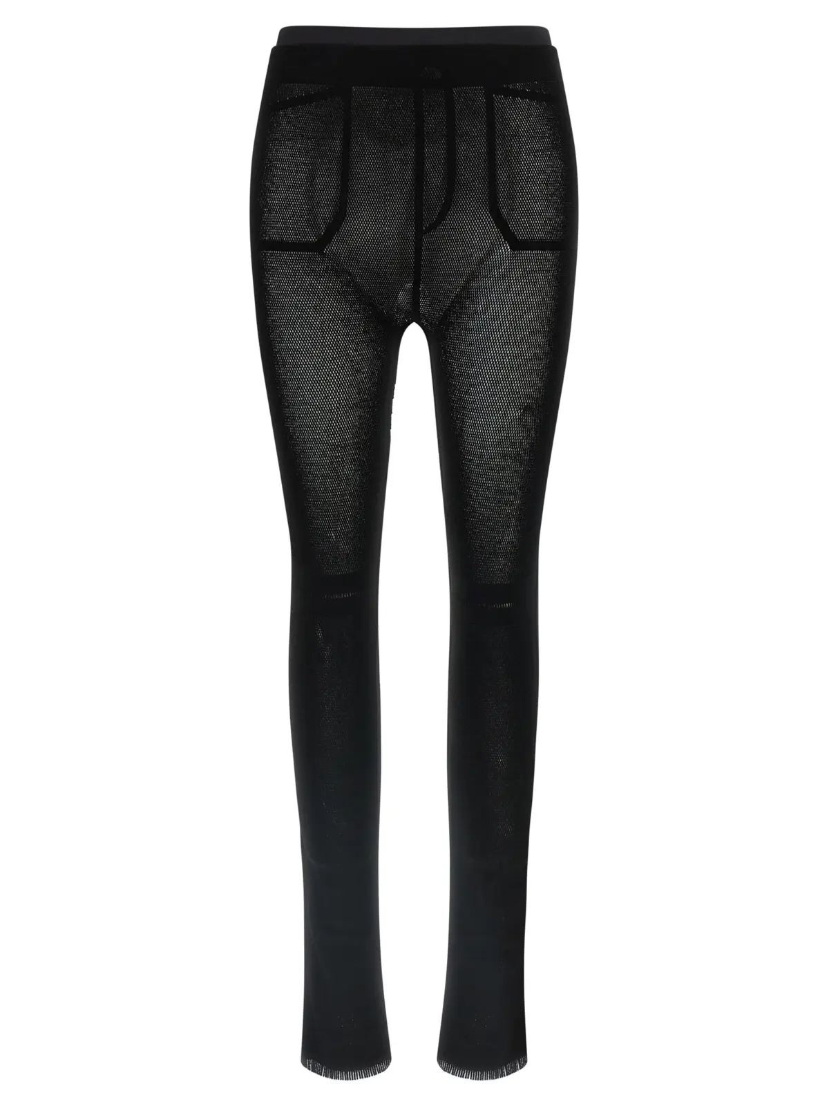 Легінси з сітчастого матеріалу A-POC. Модель з ефектом trompe-l’œil. Еластичний пояс для комфортної посадки. Декор у вигляді бахроми на низу штанин. Склад матеріалу включає 57% нейлону, 40% целюлози, 3% поліуретану.
