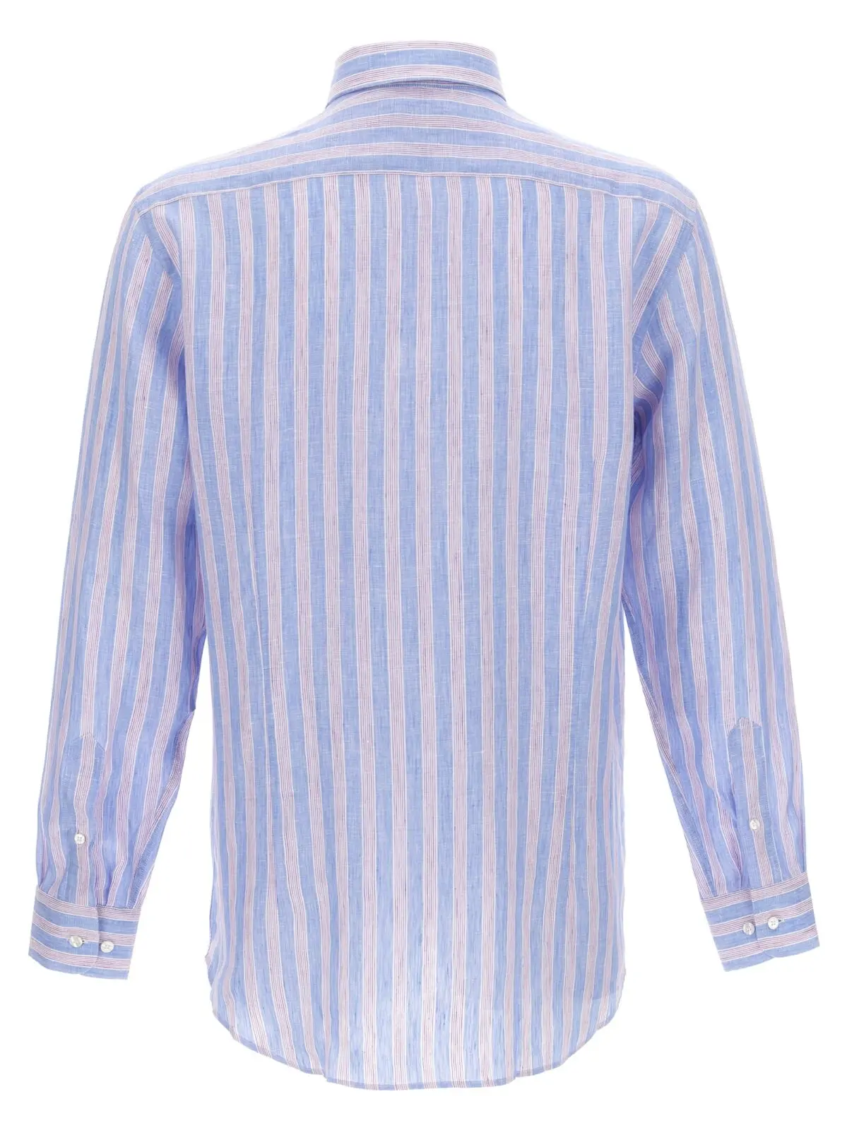 Льняна сорочка Etro в багатокольоровій смужці — це втілення елегантності та витонченого стилю. Виготовлена з 100% льону, вона забезпечує максимальний комфорт і дихаючість, що робить її ідеальним вибором для спекотних днів. Дизайн з вишивкою логотипу, гудзиковою застібкою та довгими манжетами додає особливого шарму. Ця сорочка підкреслює статус власника, а також є універсальним елементом гардеробу, що легко комбінується з різними стилями. Виробництво з екологічних матеріалів підкреслює інноваційний підхід бренду до моди.