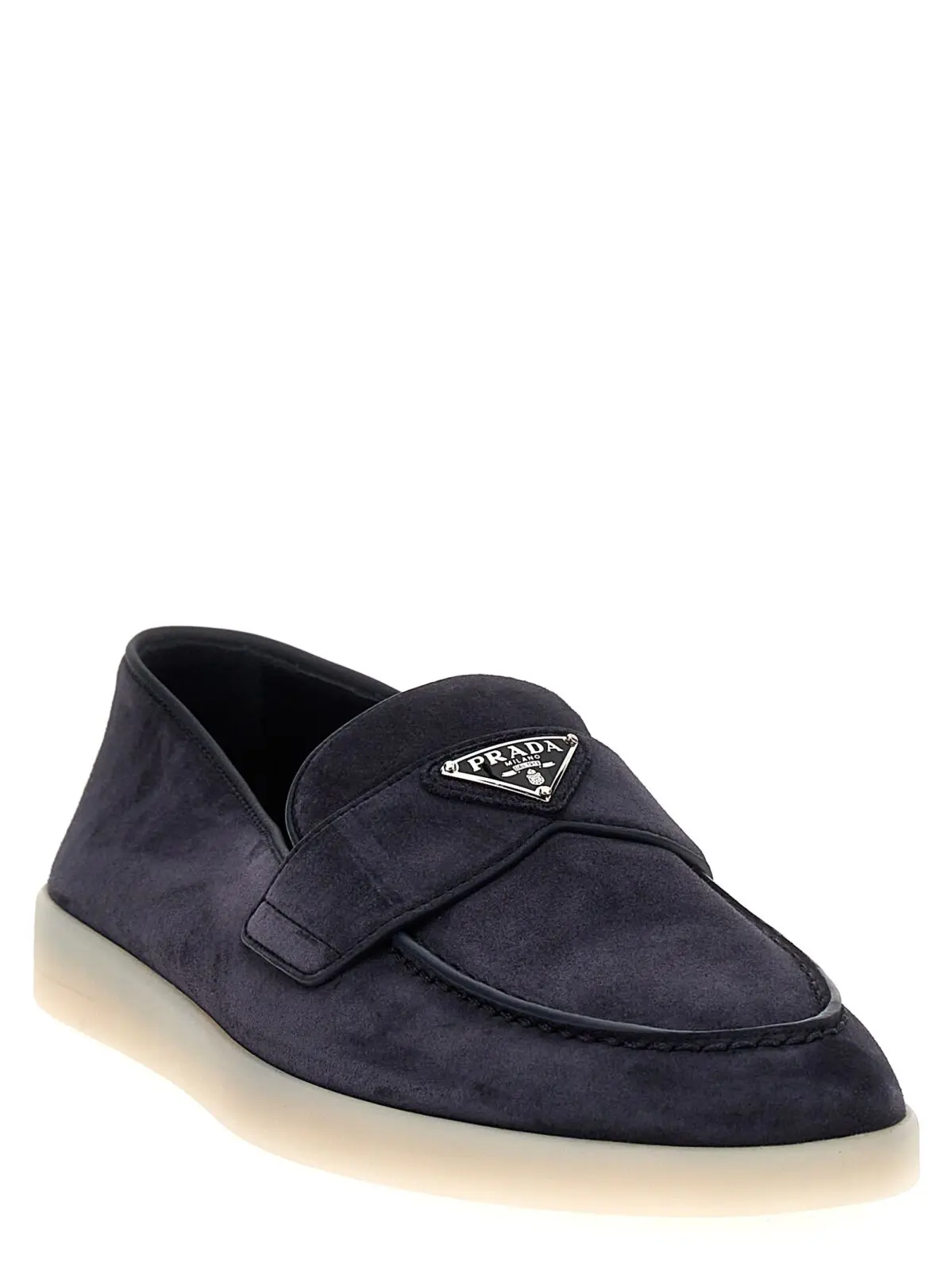 Лофери Prada Logo вишукано поєднують у собі елегантність та функціональність. Виготовлені з якісної замші, вони прикрашені емальованим металевим логотипом у формі трикутника, що додає стильного акценту. Контрастна гумова підошва забезпечує комфорт та зносостійкість, роблячи цю модель універсальною для будь-якого випадку. Цей аксесуар підкреслить ваш високий статус і неперевершений стиль, ставши невід’ємною частиною сучасного гардеробу.
