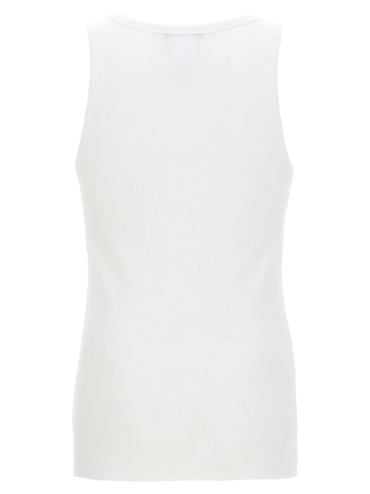 Вишукана чоловіча майка Versace в білому кольорі, виготовлена з розтяжного ребристого бавовняного полотна, підкреслить ваш стиль та індивідуальність. Неперевершений комфорт забезпечується завдяки складу тканини – 93% бавовна та 7% еластан. Особливу увагу привертає вишитий логотип Versace на передній частині, що додає ексклюзивності. Майка має круглий виріз горловини, завдяки чому ідеально підійде до будь-якого повсякденного чи спортивного образу. Виріб поєднує в собі елегантність та практичність, стане відмінним доповненням до гардеробу сучасного чоловіка.