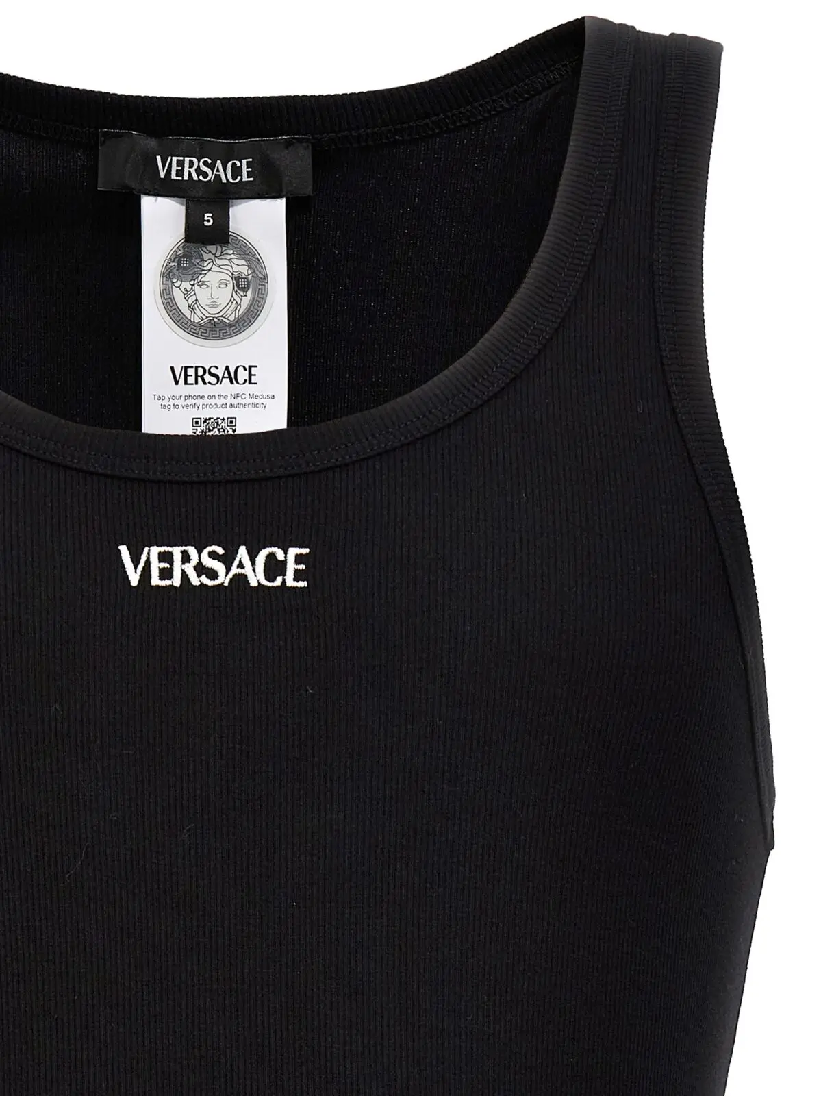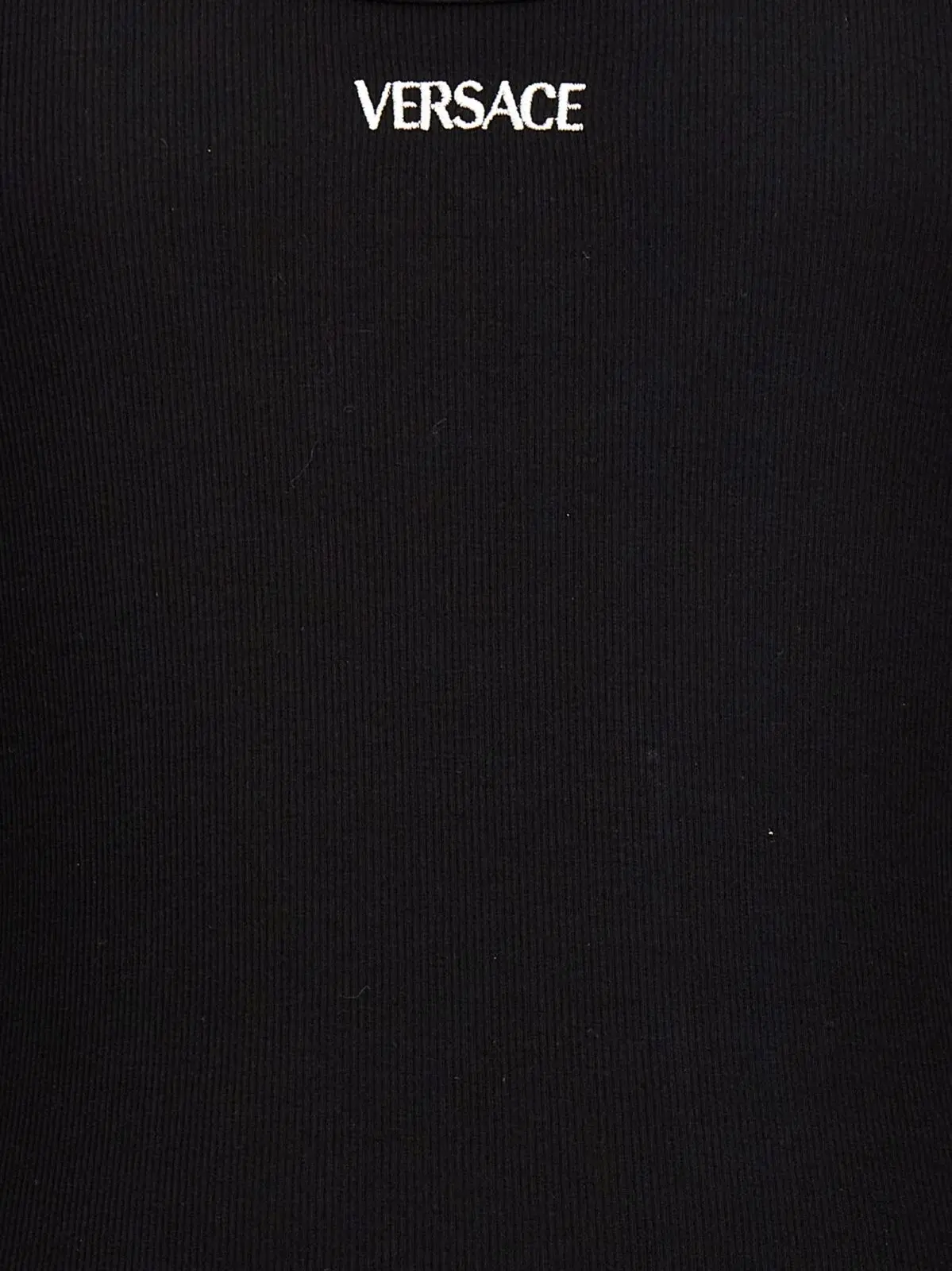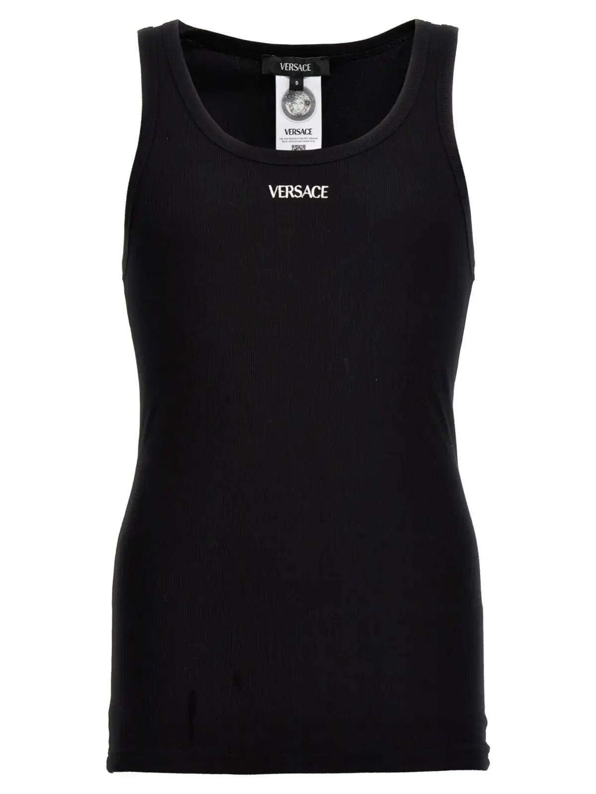 Чоловіча майка Versace в чорному кольорі стане вишуканим доповненням до вашого гардеробу. Виконана з розтяжного ребристого бавовни, що на 93% складається з бавовни та 7% еластану, ця майка забезпечує відмінний комфорт та ідеально підходить до тіла. Її особливістю є вишитий логотип Versace на передній частині, що надає елемент розкоші. З круглим вирізом горловини, цей елемент одягу ідеально підходить для створення стильного образу.