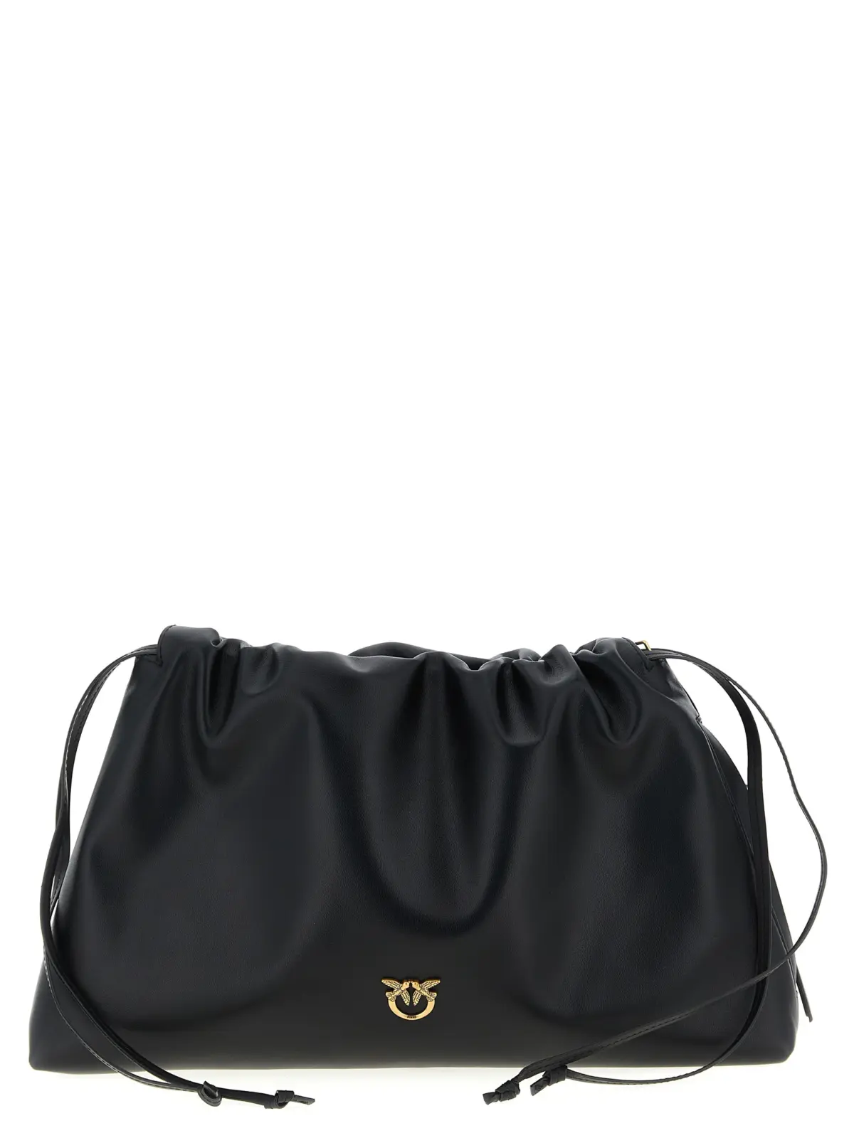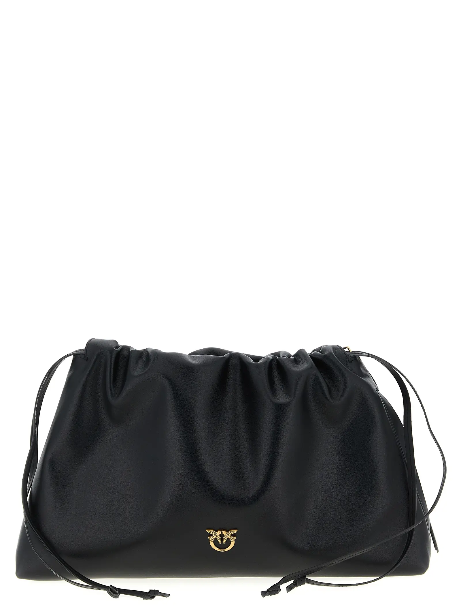 Максі клатч із гладкої телячої шкіри чорного кольору з матовим покриттям вражає своєю витонченістю та унікальним дизайном, поєднуючи елегантну силуетну форму з вишуканою металевою емблемою у вигляді птахів і делікатною вишивкою на задній частині. Затягування на шнурок, бічна кишеня на блискавці та регульований плечовий ремінь забезпечують зручність і функціональність, а внутрішня підкладка з технічної тканини гарантує довговічність. Цей аксесуар підкреслює статус і неперевершений стиль, ставши ідеальним вибором для сучасної впевненої у собі жінки.