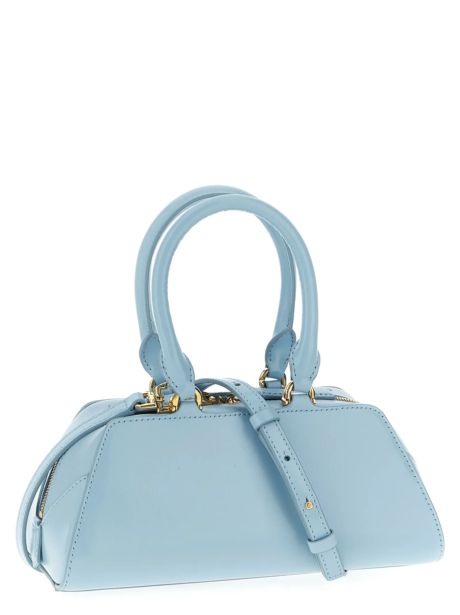 Міні-сумка з гладкої шкіри з формою Antigona. Подовжена прямокутна форма зі складною конструкцією боків в стилі оригамі. Нашивка з тисненим логотипом в тон сумки. Верхня застібка на блискавку. Подвійна фіксована трубчаста ручка. Жорстке дно. Регульований і знімний плечовий ремінь. Виготовлена зі 100% телячої шкіри.