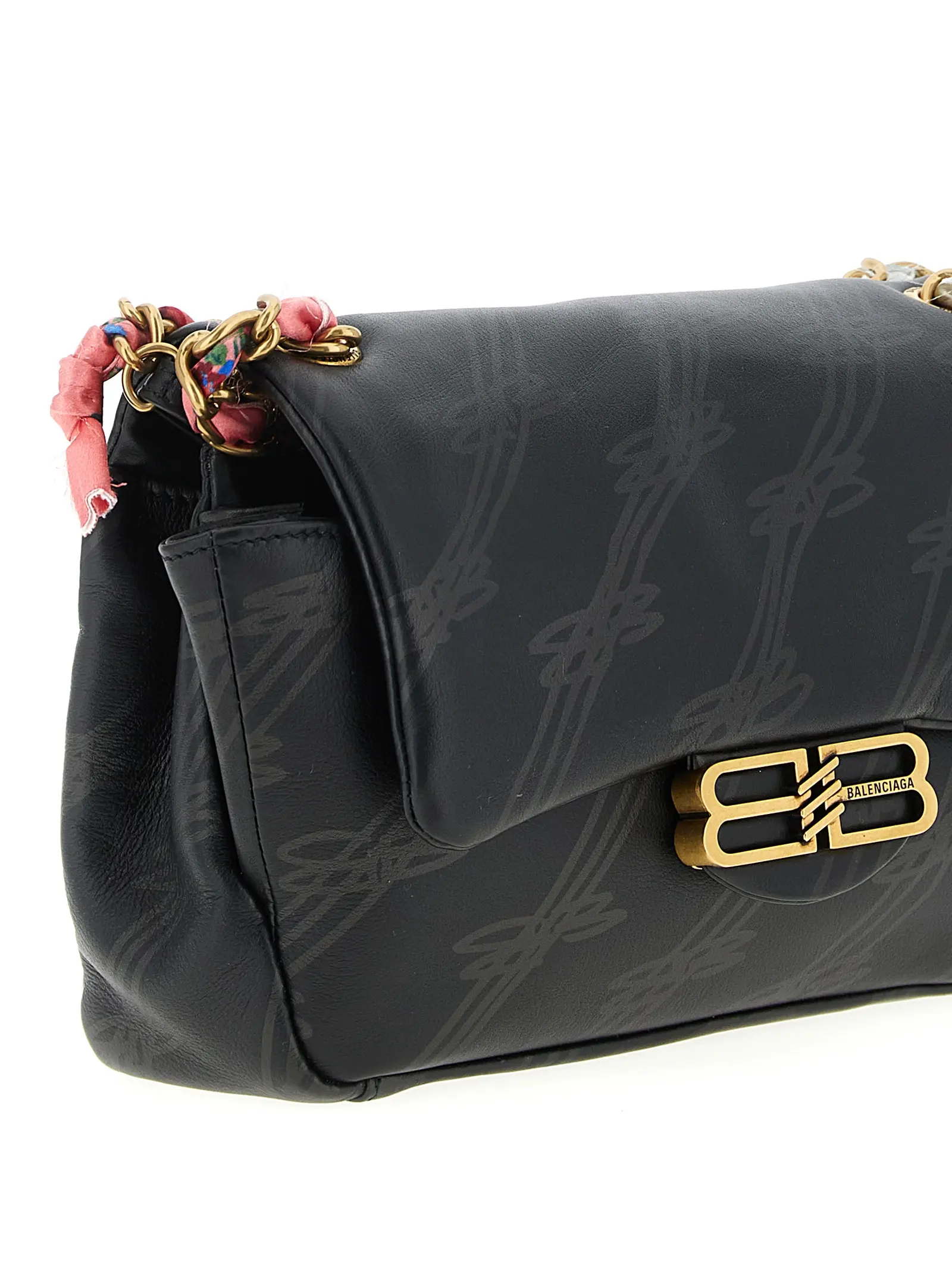 Міні сумка на плече з телячої шкіри. Вся поверхня прикрашена монограмою. Підкладка з тканини з ефектом міре. Магнітна застібка з металевим логотипом. Задні кишені для додаткового зберігання. Регульований ланцюжок з шкіряною підкладкою. Тканини з візерунком і сирим зрізом. Склад матеріалу включає льон, віскозу і шовк.