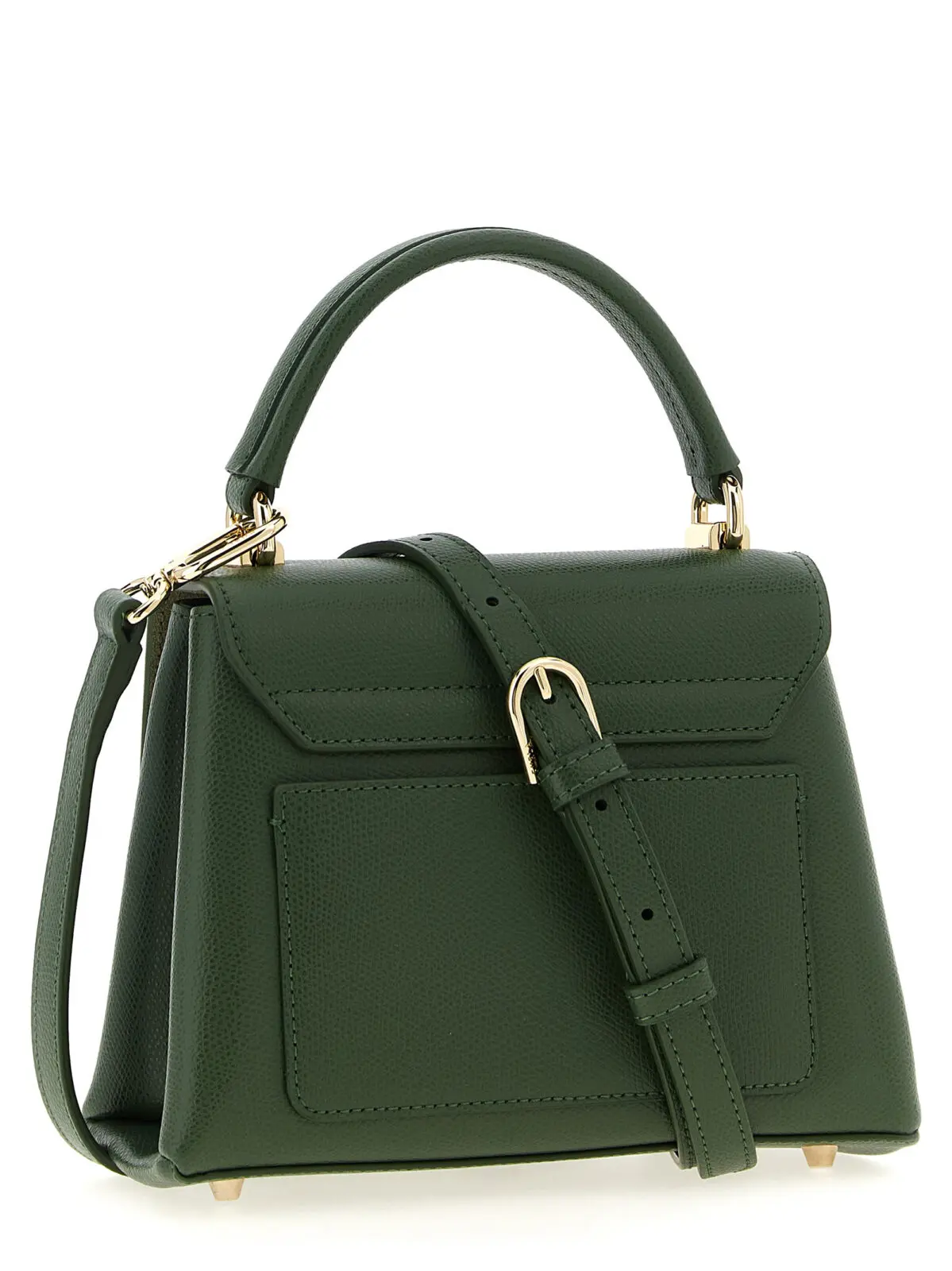 Міні-сумка Furla 1927 зелена виготовлена з натуральної шкіри високої якості з вишуканою текстурою, оснащена металевою застібкою з логотипом Arco, знімним металевим ланцюжком та функціональними кишенями. Вона поєднує інноваційний дизайн і універсальність, підкреслюючи статус і бездоганний стиль власниці.