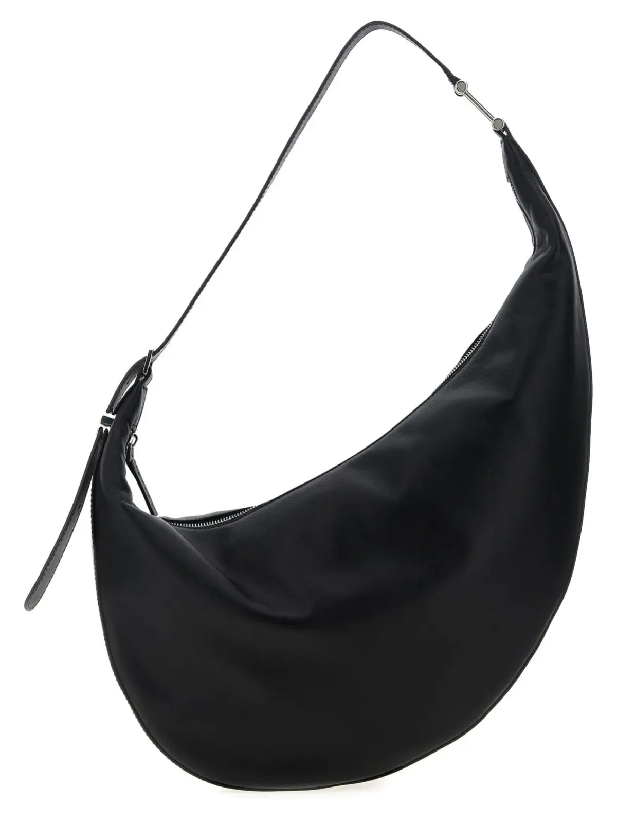 Міні-сумка крос-боді Marni Hobo Small виготовлена з натуральної телячої шкіри найвищої якості, має асиметричну півмісяцеву форму та металеві елементи, що підкреслюють її інноваційний дизайн. Зручна застібка на блискавку та регульований ремінець забезпечують комфорт і універсальність, додаючи витонченого стилю й статусу.