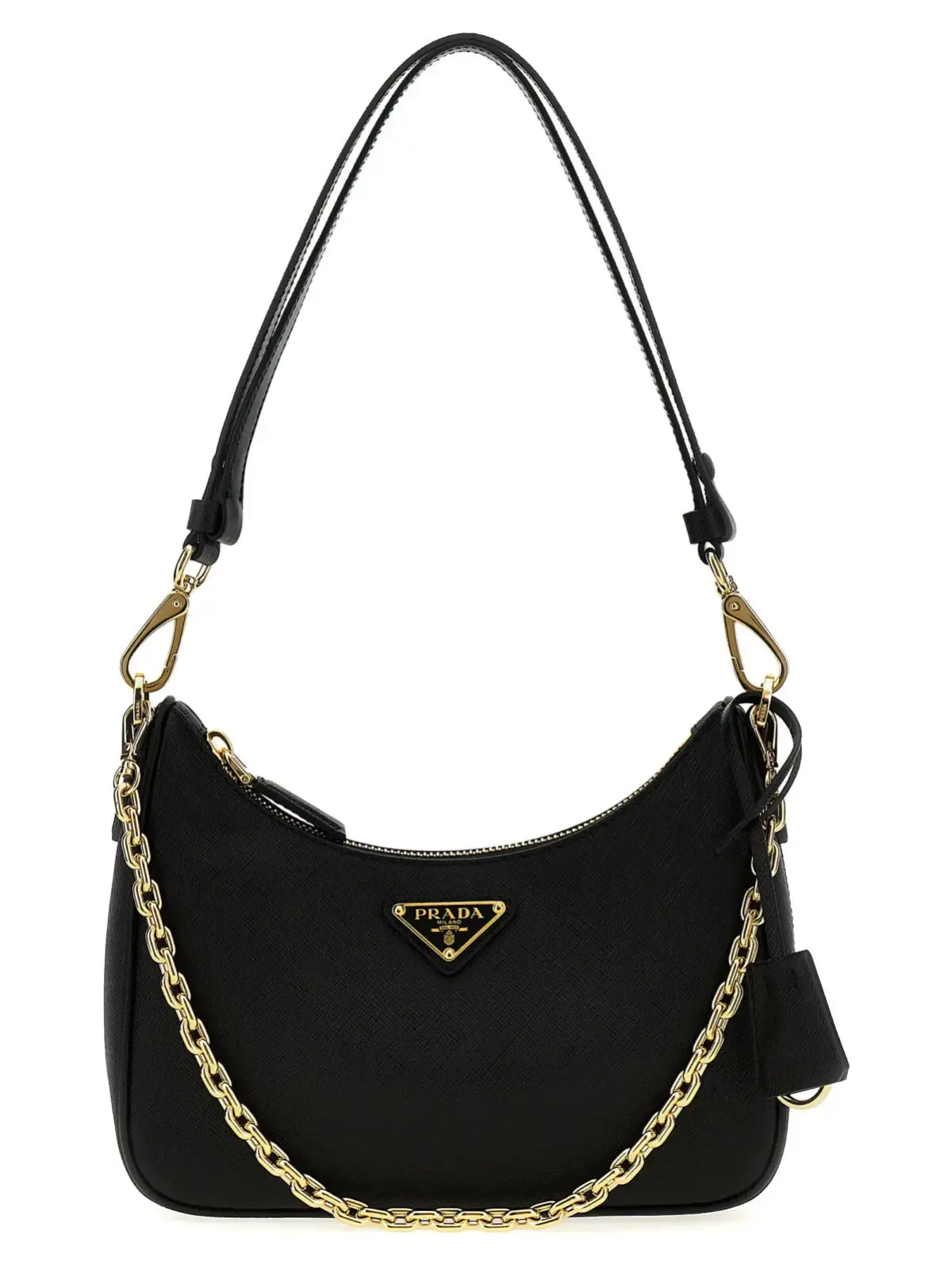 Міні-сумка Prada Re-Edition виконана з високоякісної телячої шкіри Saffiano, що підкреслює її елегантність і довговічність. Дизайн доповнено емальованим металевим логотипом у формі трикутника та зручним застібкою-блискавкою. Віднімний ланцюговий ручка та регульований шкіряний брелок забезпечують універсальність використання. Ця сумка є ідеальним аксесуаром для сучасної жінки, яка цінує стиль, статус та інноваційність.