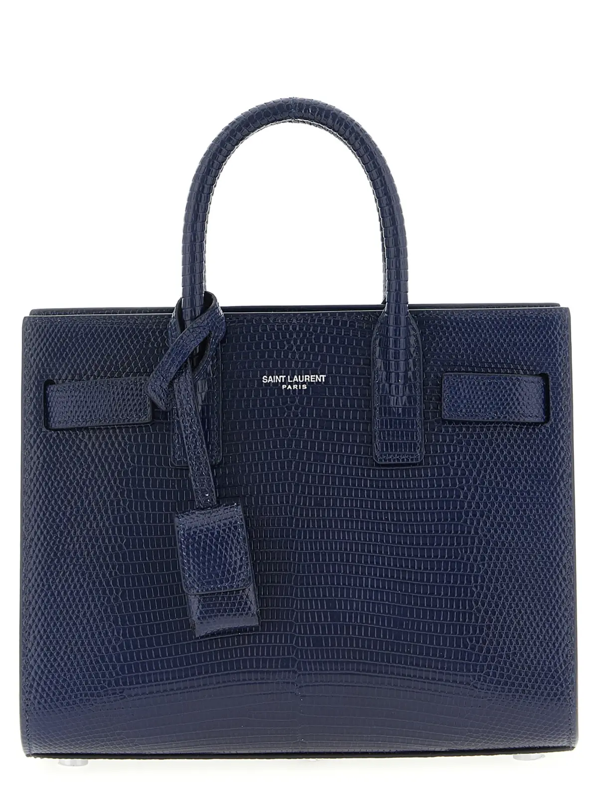 Міні сумка Sac De Jour виконана з натуральної шкіри ящірки насиченого синього відтінку, що підкреслює вишуканий стиль і статус власниці. Витончений тиснений логотип на передній панелі, бокові вставки зі стрічками та подвійна фіксована трубчаста ручка створюють гармонійний дизайн, а жорстке дно з металевими ніжками забезпечує довговічність і практичність. Знімний металевий замок і регульований плечовий ремінь додають універсальності, поєднуючи елегантність і функціональність у цьому інноваційному аксесуарі преміум-класу.