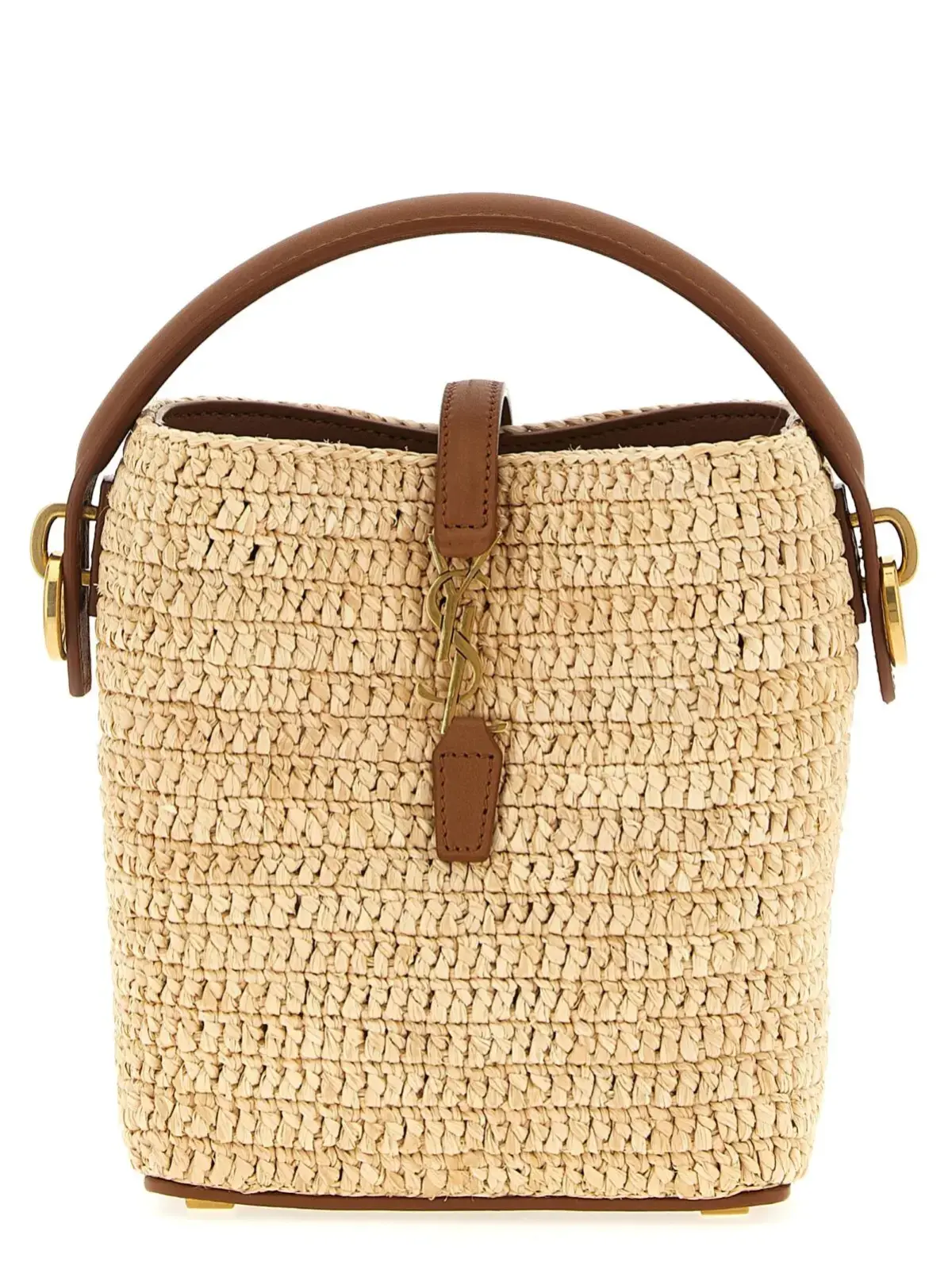 Міні-сумка відро Saint Laurent Le 37 виконана з натуральної рафії з витонченими шкіряними деталями, оснащена зручною фіксованою ручкою та регульованим плечовим ременем. Вишукане металеве замикання з антикварним логотипом надає виробу унікального шарму, підкреслюючи статус і бездоганний стиль.