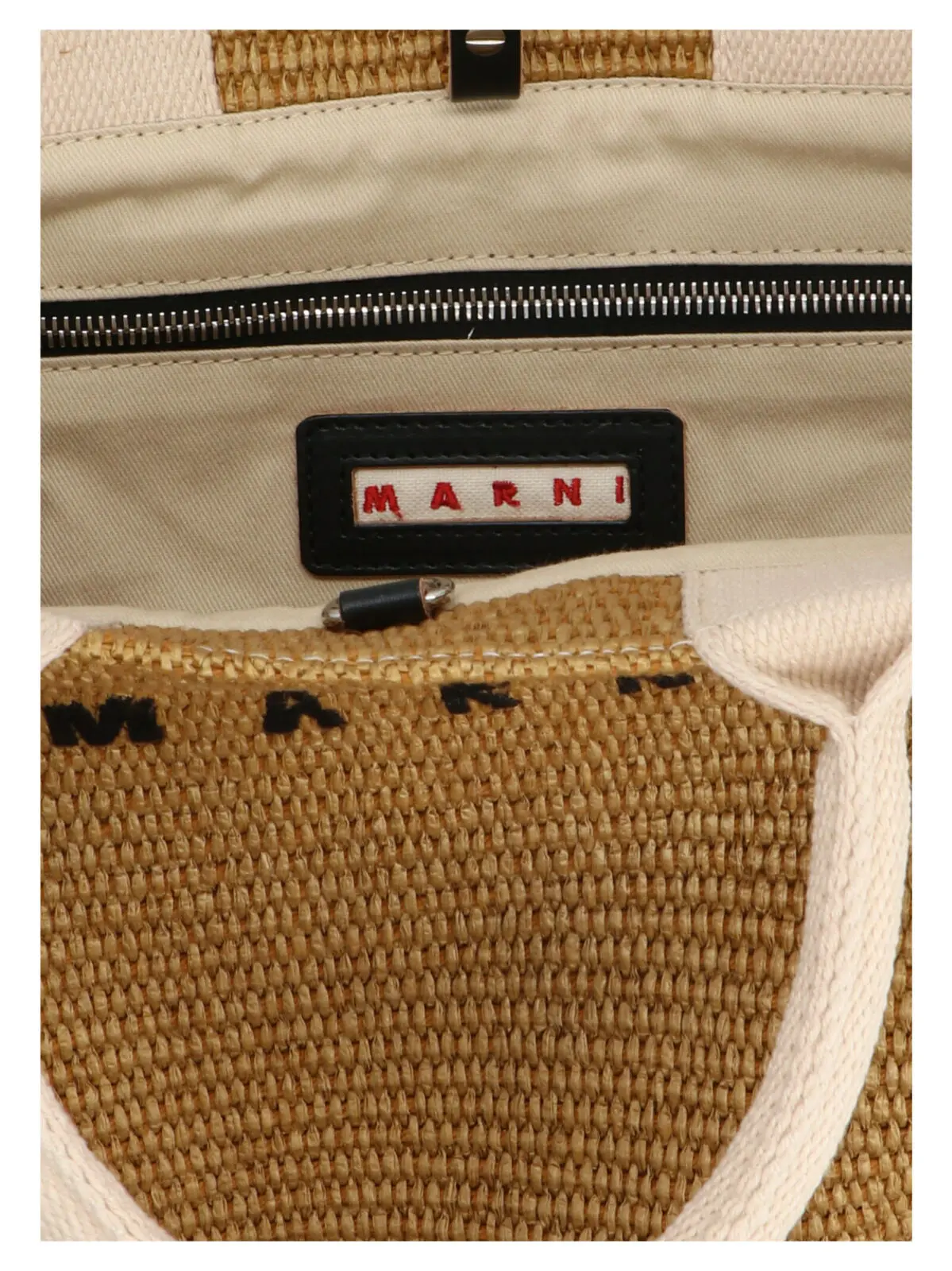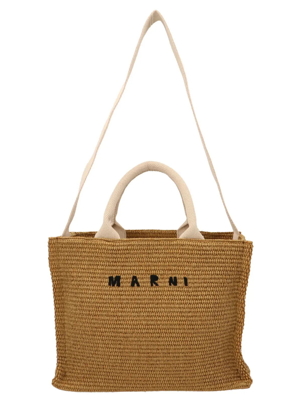 Мініатюрна сумка для покупок Tote Marni в бежевому кольорі – це жіноча рафіяна сумка Mini Tote з подвійною ручкою з полотна та вишивкою логотипу спереду. Виготовлена з 52% бавовни та 48% поліаміду.