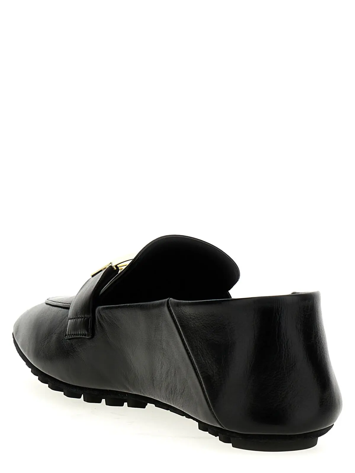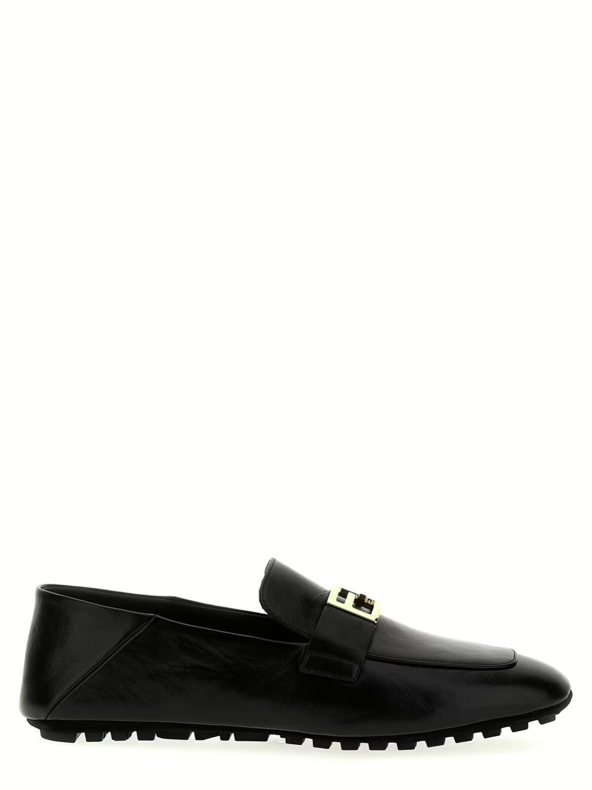 Мокасини ‘Baguette’ Fendi із 100% ягнячої шкіри (Ovis aries). Характеризуються передньою металевою лого-аплікацією, замшевою підошвою з гумовими вставками та невисоким закругленим каблуком.