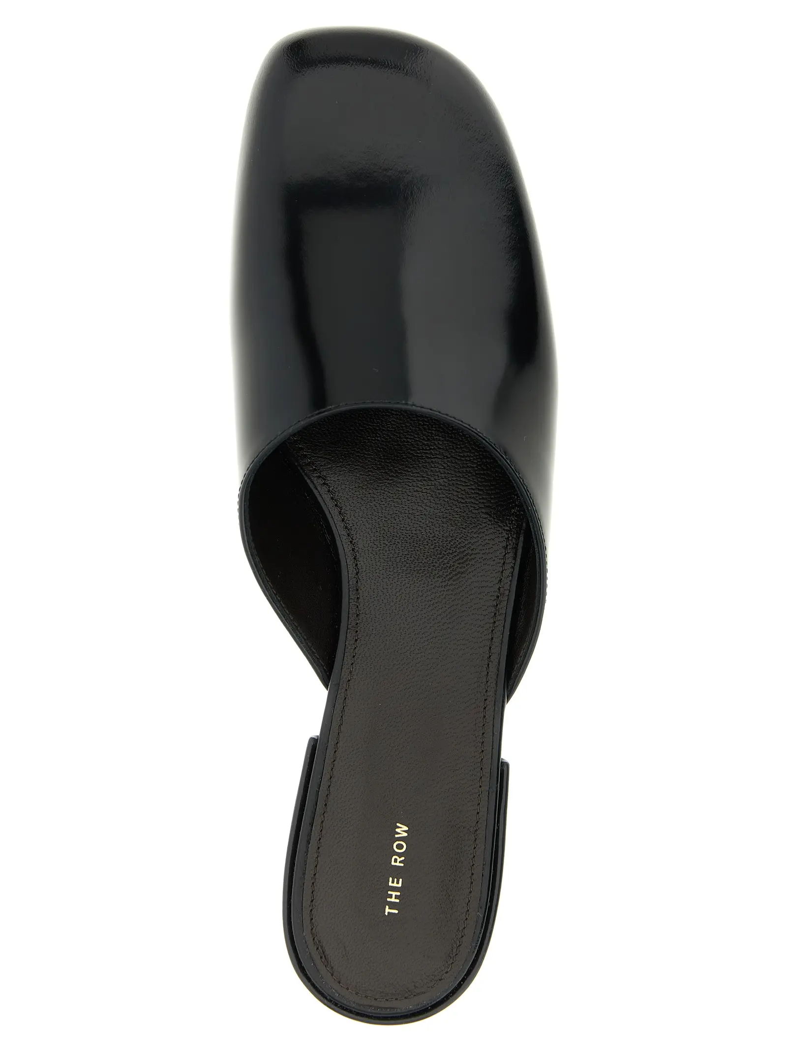 Ідеальні жіночі мюлі з лакованої шкіри великої рогатої худоби вишуканого чорного відтінку з квадратним носком, що поєднують елегантність і сучасний дизайн. Ламелярний каблук додає інноваційності, а гумова підошва забезпечує комфорт і практичність. Цей slip-on аксесуар підкреслить статус і бездоганний стиль у будь-якій ситуації.