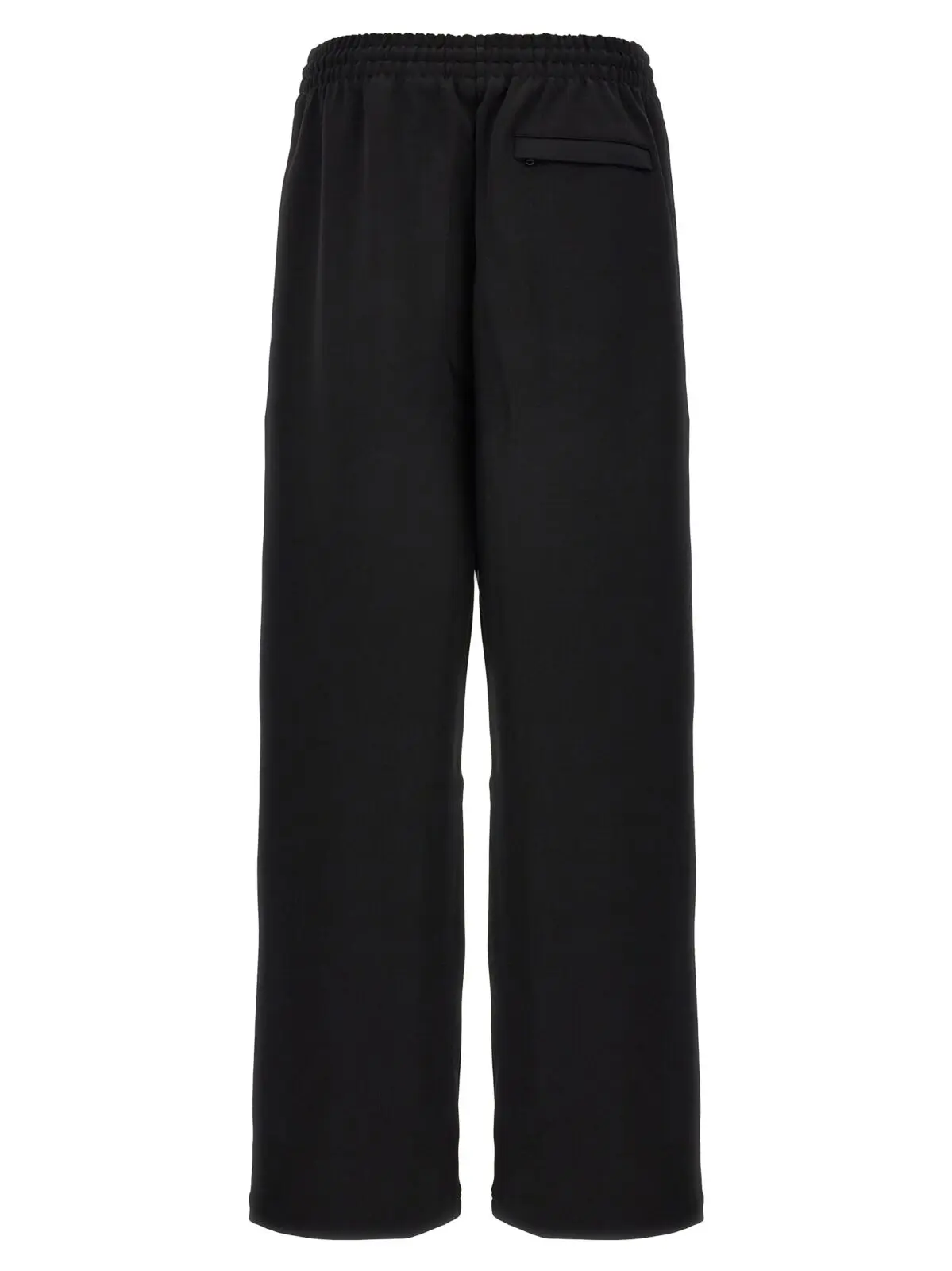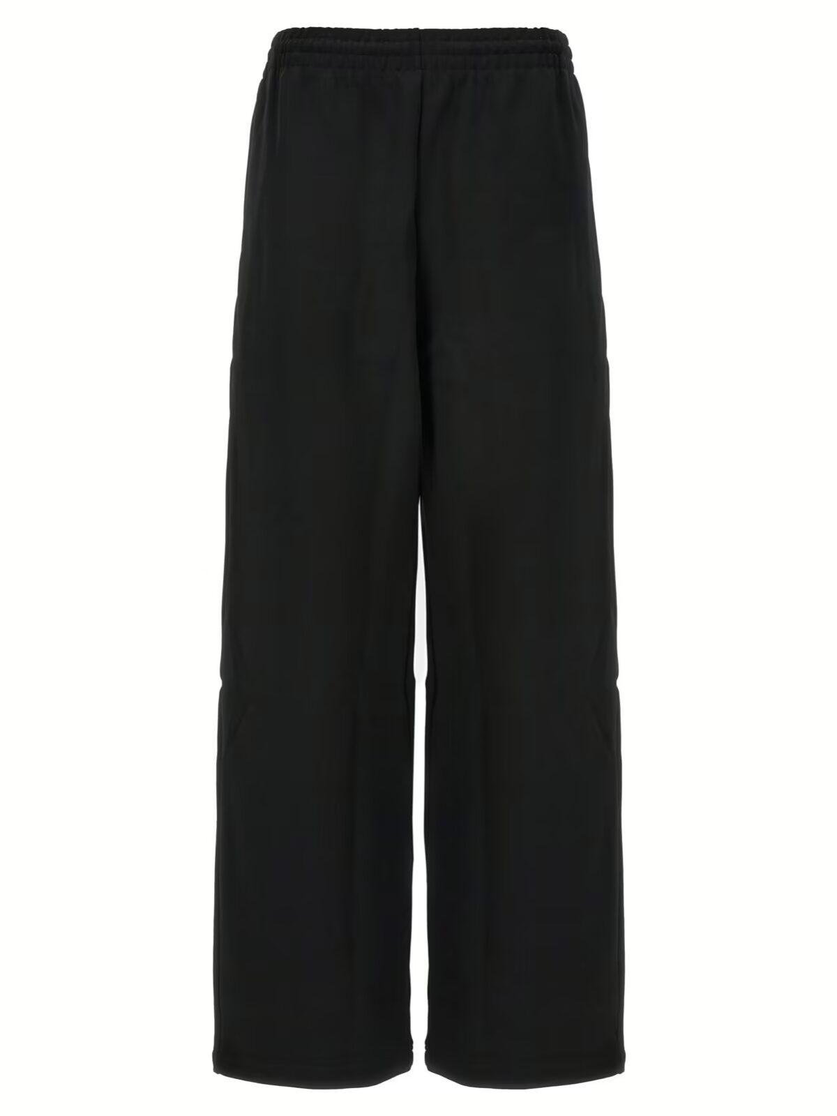 Нові спортивні штани Track Wardrobe Nyc чорного кольору з напівматовим ефектом. Виготовлені з віскозного міксу з еластичним поясом і затяжкою, кишенями та широкою низькою. Склад: 60% віскоза, 30% поліамід, 10% еластан.