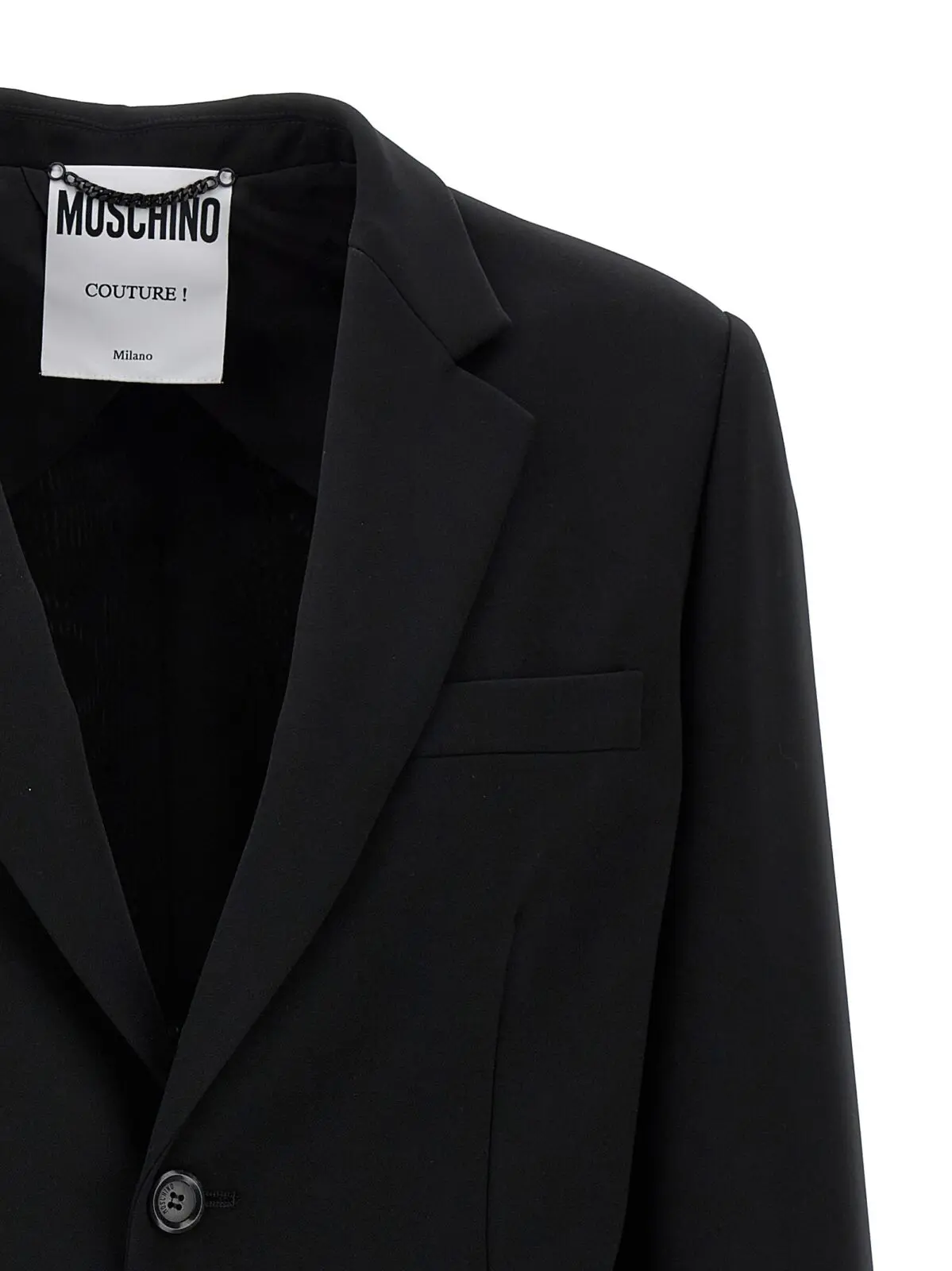 Однобортний блейзер-мартінгал Moschino в елегантному чорному кольорі втілює досконалість сучасної моди, поєднуючи в собі бездоганний стиль і безкомпромісну якість. Виготовлений з високоякісних матеріалів, що складаються на 88% з поліестеру та 12% з еластану, цей блейзер забезпечує ідеальну посадку та комфорт, підкреслюючи силует завдяки структурованим плечам та сучасному крою. Інноваційний дизайн включає кнопкову застібку, елегантні кишені та вишукану деталь з логотипом на спині, що додає шарму та відчуття статусу. Універсальність цього виробу дозволяє легко комбінувати його як з повсякденним, так і з вечірнім вбранням, надаючи кожному образу нотки розкоші. Блейзер Moschino — це не просто одяг, а вираження індивідуальності та стилю, що підкреслює вашу унікальність у світі моди.