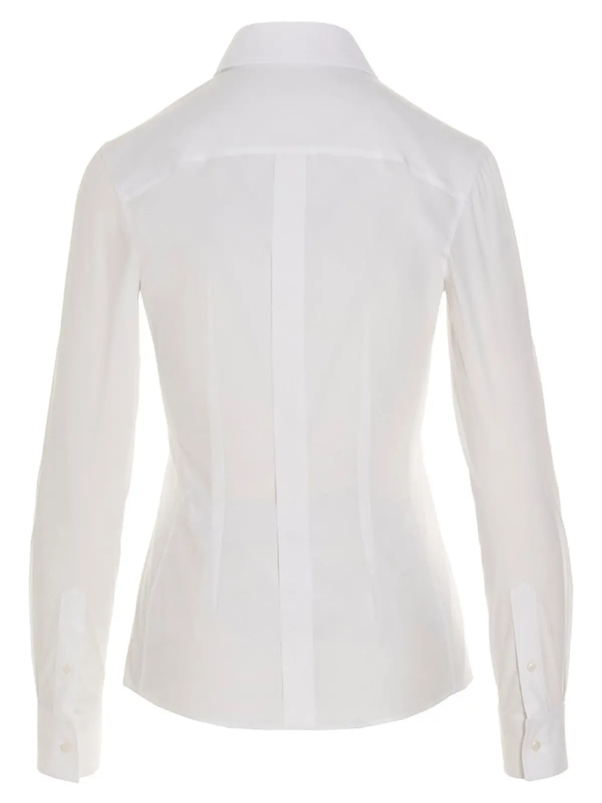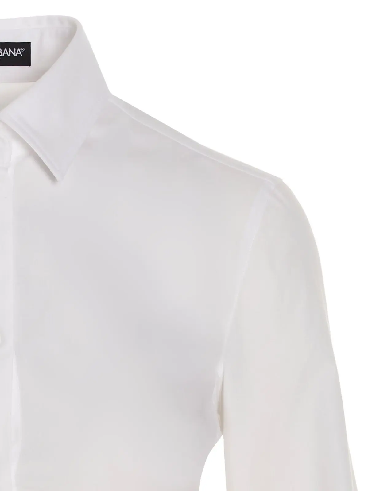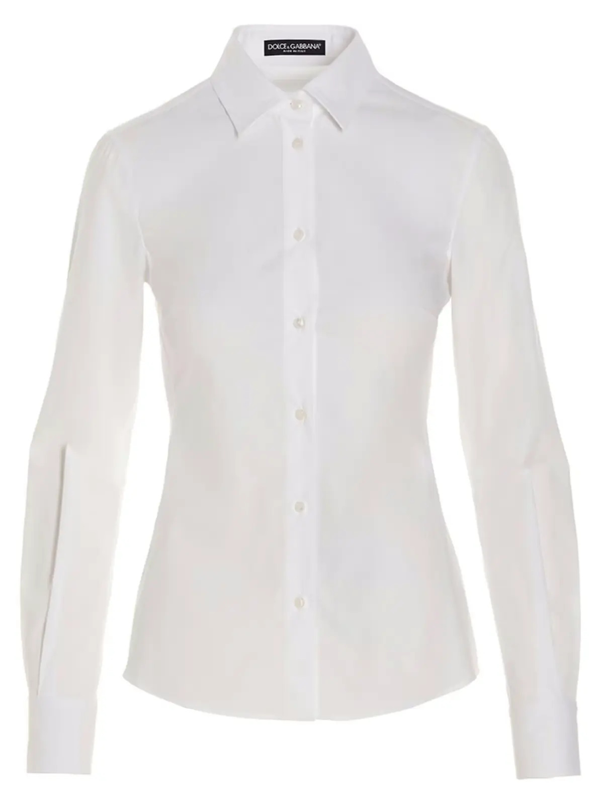 Стильна біла жіноча основна сорочка від Dolce & Gabbana. Виготовлена з 97% бавовни та 3% еластану. Має застібку на ґудзики, довгі манжети на рукавах. Ideal for a classic and elegant look.