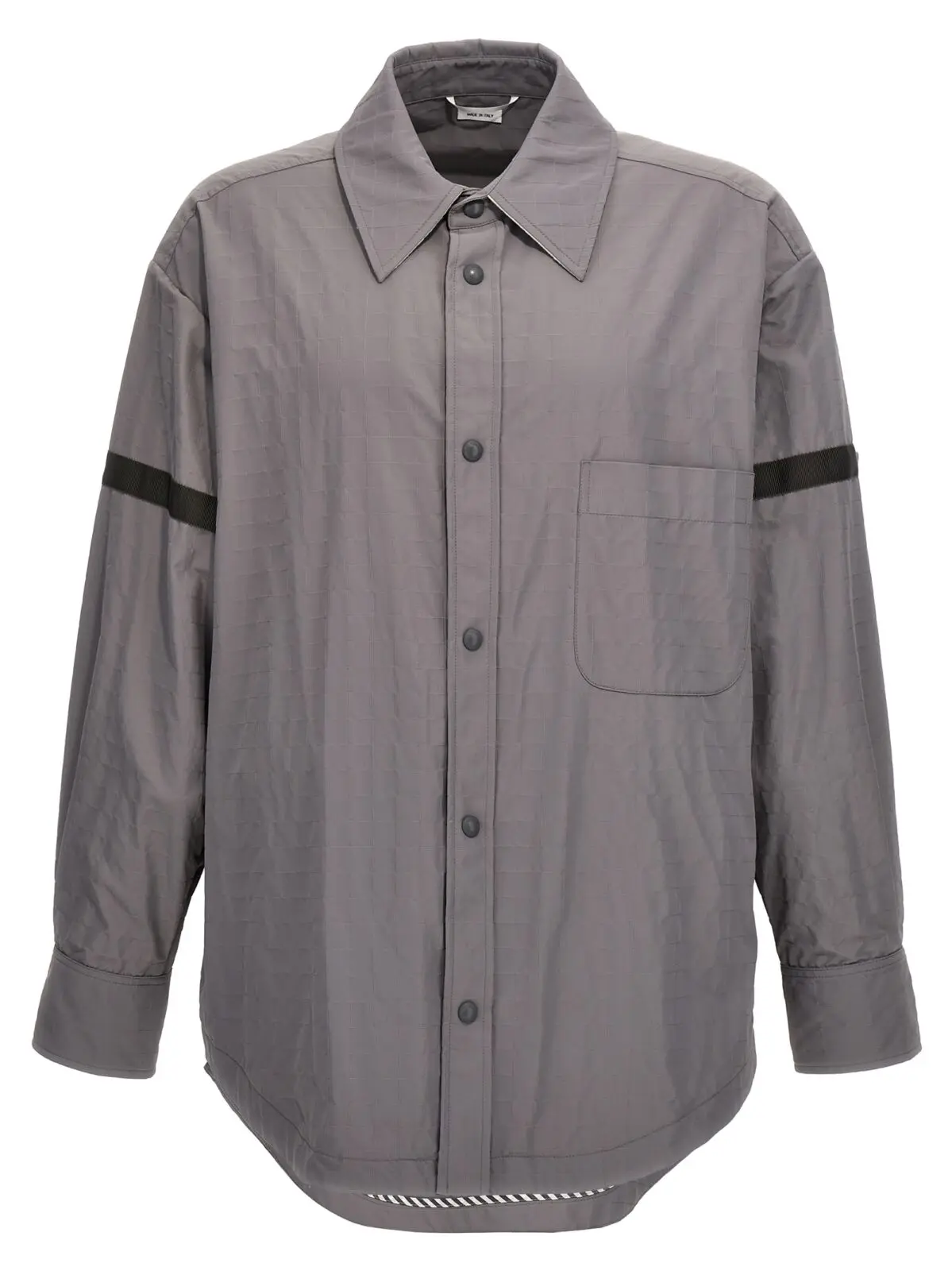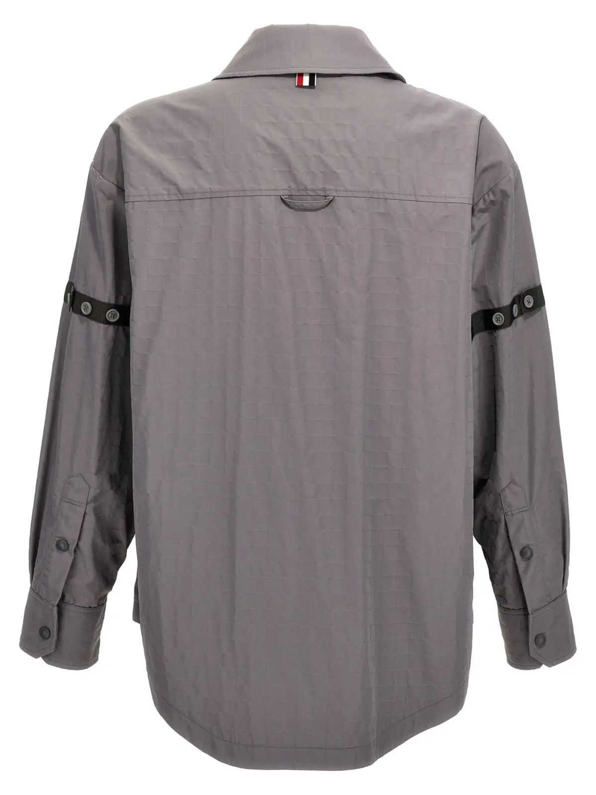 Чоловічий сірий овершірт “Snap Front” від Thom Browne виготовлений із міцного ripstop nylon. Особливості моделі включають застібку на кнопки, кишені та довгі рукави з манжетами. Склад матеріалу – 90% поліаміду і 10% поліуретану, що забезпечує високу зносостійкість. Ідеальний варіант для стильного та практичного чоловічого гардеробу.
