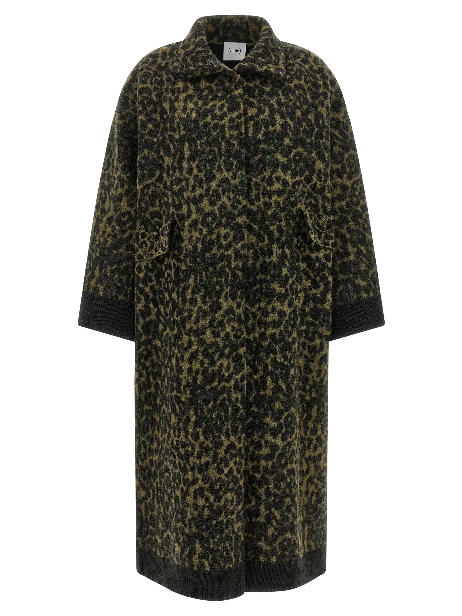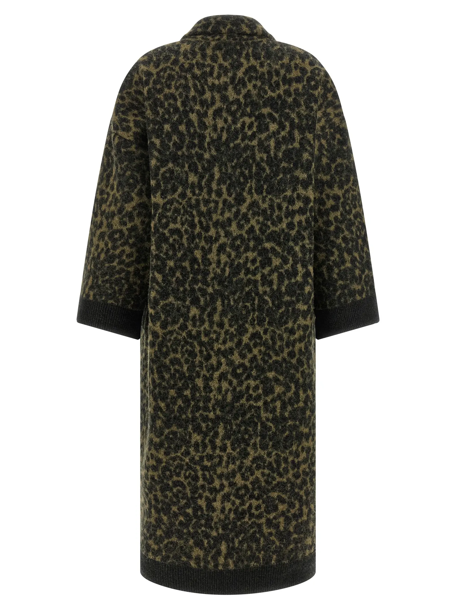 Елегантне довге пальто з вовняної суміші з анімалістичним принтом вишукано підкреслює індивідуальний стиль і статус. Високий комір і застібка на кнопки додають сучасної функціональності, а бокові кишені забезпечують зручність. Матеріали найвищої якості гарантують тепло і комфорт у будь-яку погоду.
