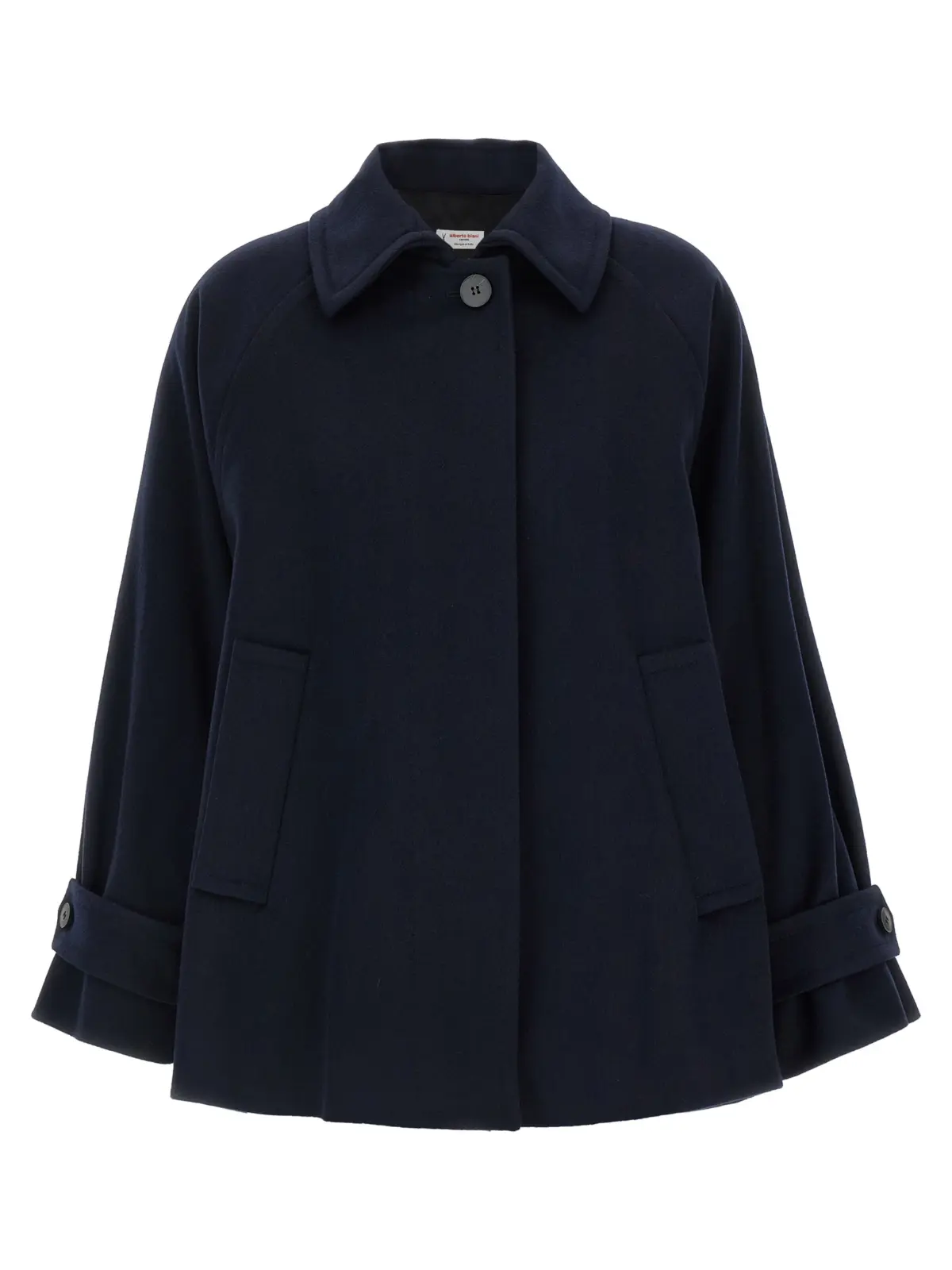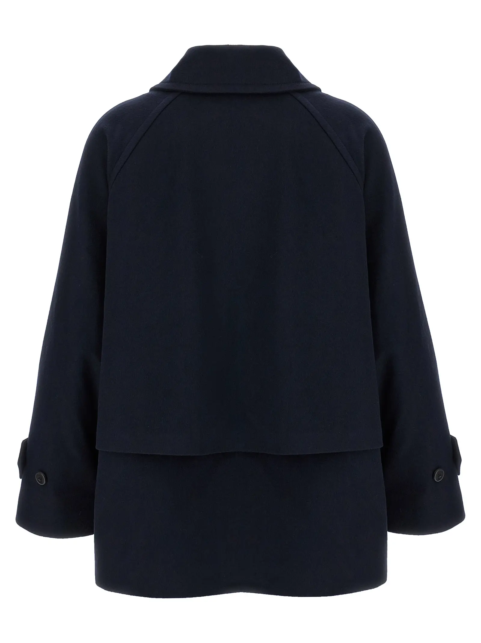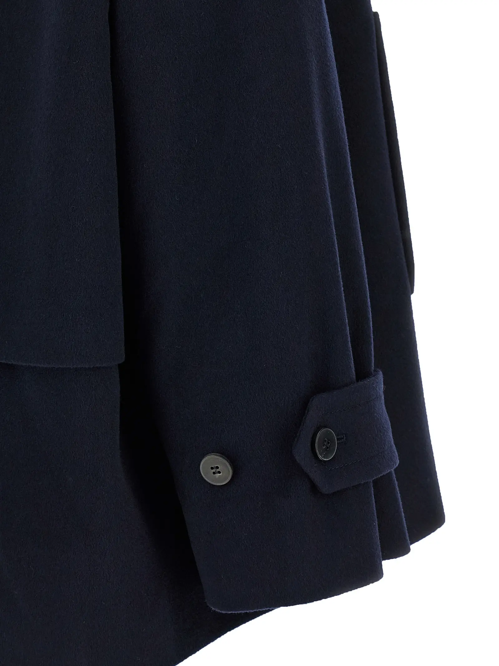 Вишукане жіноче пальто Caban виконане з 100% вовни першого сорту, поєднує класичний сорочковий комір із прихованою застібкою на ґудзики, розширені довгі рукави реглан та стильну накидку на спині. Внутрішня підкладка з віскози забезпечує комфорт, а елегантний дизайн підкреслює статус і бездоганний смак власниці.