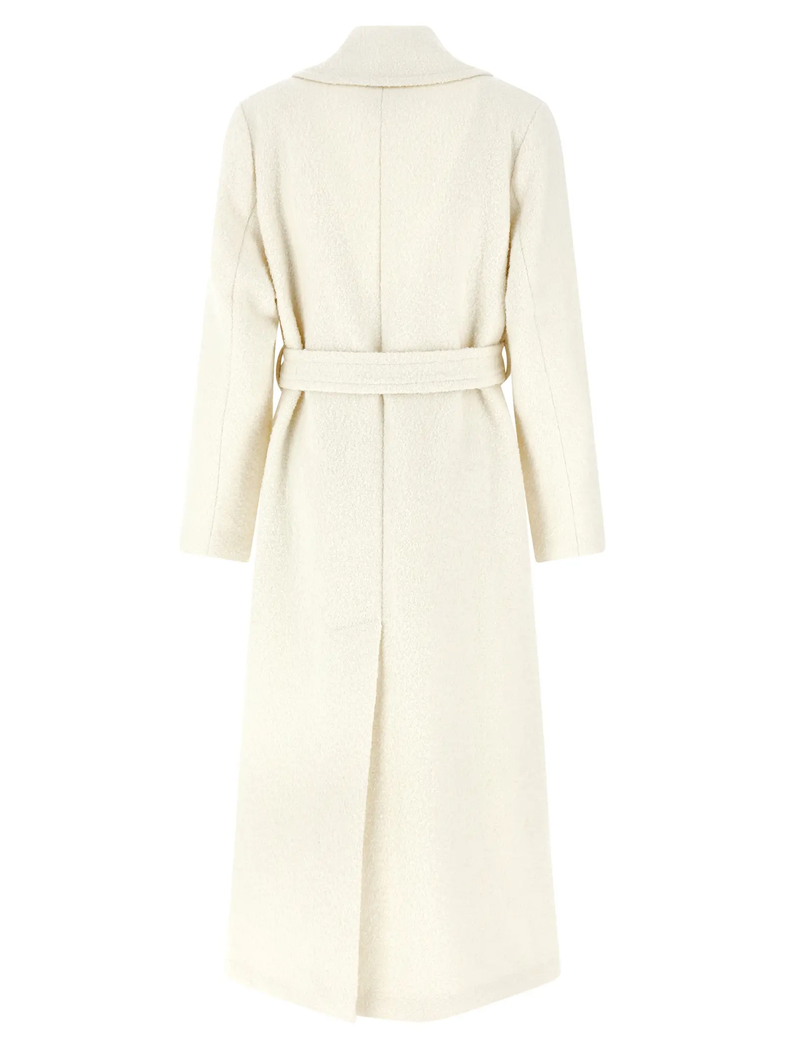 Пальто пошите з діагональної букле вовняної суміші. Має однобортну застібку на гудзики. Комір відкладний класичний. Присутні накладні кишені. Рукави довгі. Ззаду є розріз. Передбачений знімний пояс. Підкладка виготовлена з віскозної суміші. Склад тканини включає 40% поліестеру, 38% вовни, 14% акрилу, 8% поліаміду.